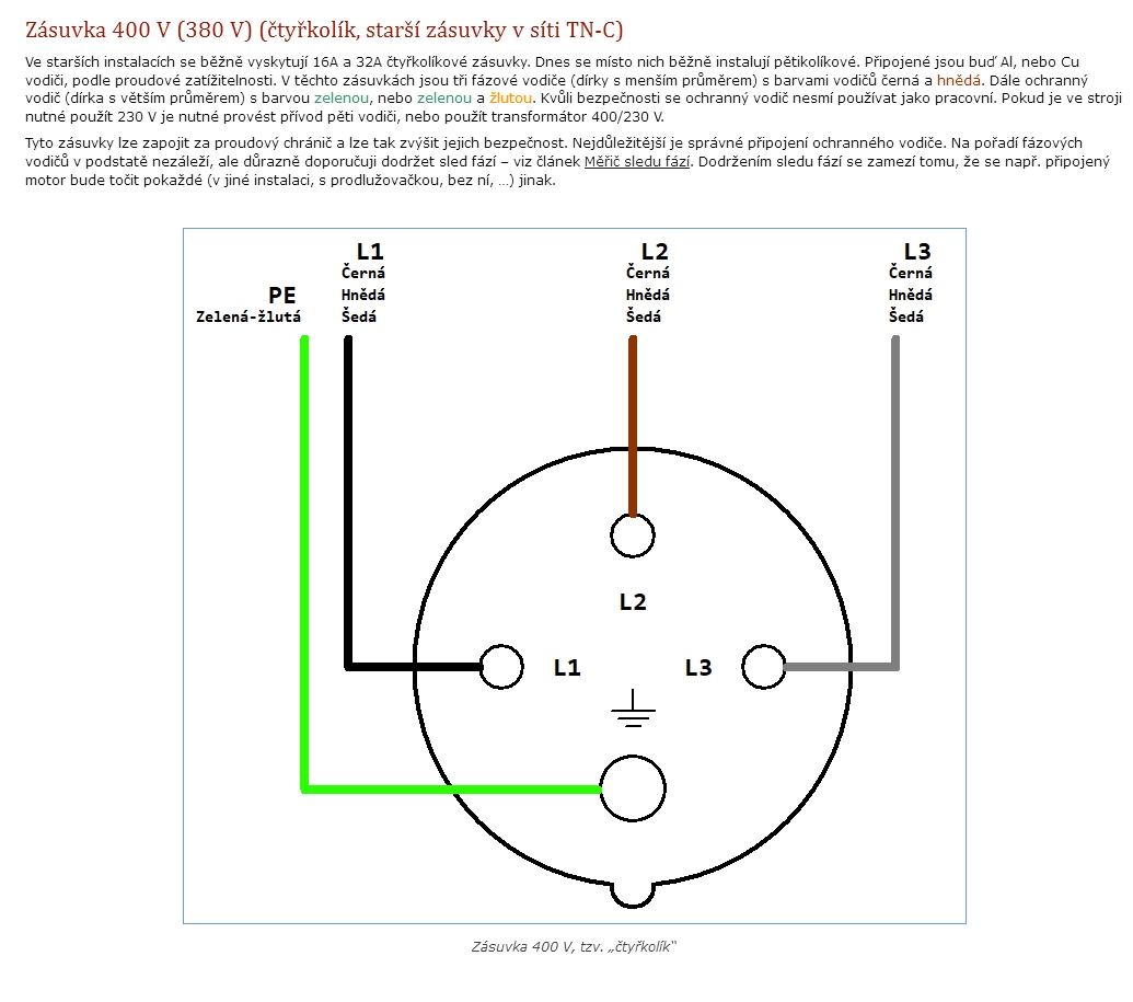 Tak tu citovanou stránku bys snad ani neměl číst. Je to výplod nějakého poloamatéra. Jako do očí bijící uvádím například tohle (ostatní části jsem raději nečetl): Ostatní "znalí" kolegové jistě potvrdí že v síti TN-C žádný vodič PE neexistuje, jak autor uvádí v přiloženém nákresu. Tam je pouze vodič PEN, který v síti TN-C slouží současně jako pracovní a ochranný. Takže nějaké bláboly o tom, že se ochranný vodič nesmí použít jako pracovní jsou naprostým nesmyslem (mluvím tedy pořád o TN-C).