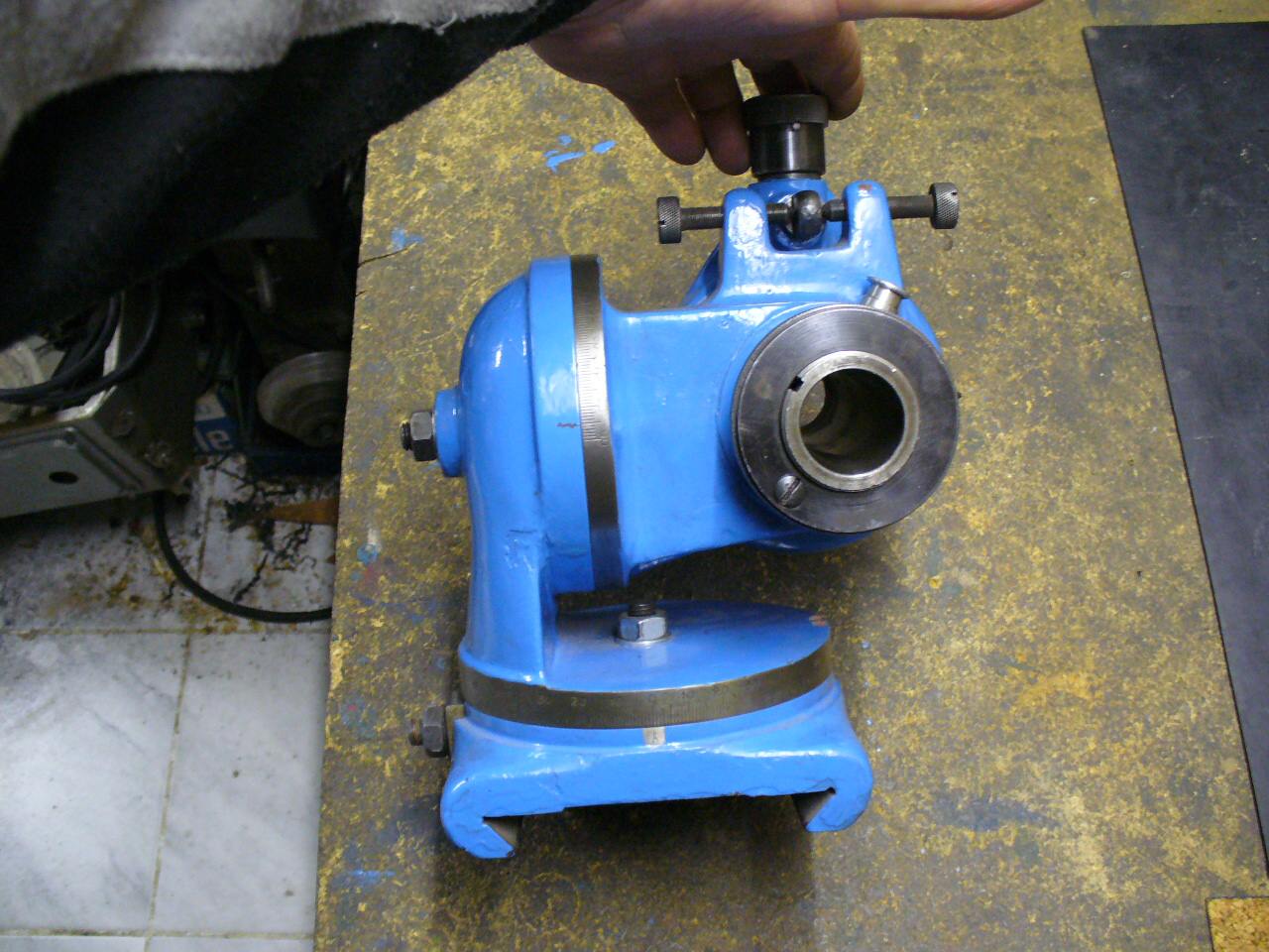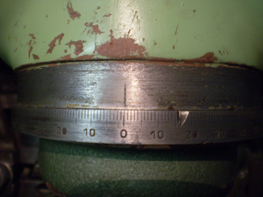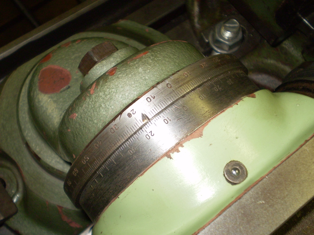 Ten můj vřeteník s řemenicí a má jen stupnici od nuly do 62°. Takže je to asi opravdu pro broušení nakulato. Navíc to neštimuje. Když je to na nule, tak osa vřetene není rovnoběžná s základní deskou. Asi protože je to poskládané z více kusů, což je znát i podle nátěru.