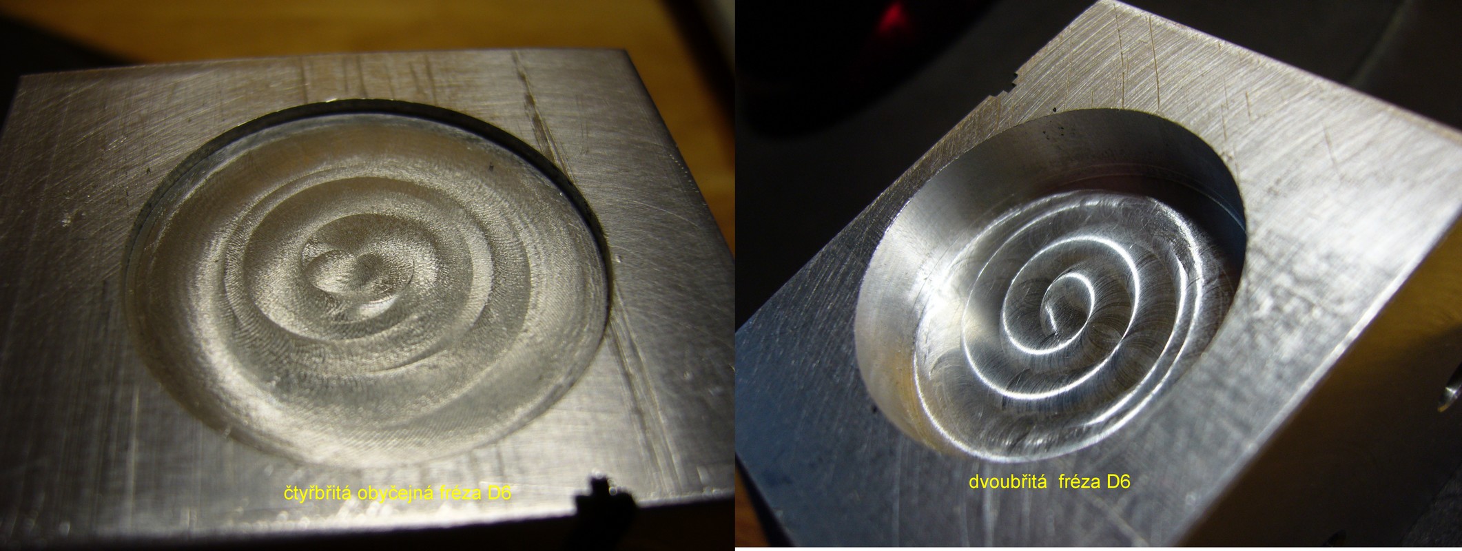 Ach jo, je mě špatně, první ulomená fréza za 1200. Chce to ruční kolečko. Najížděl jsem opatrně do materiálu jen na dotyk, ruku jsem měl nataženou a přehmátl jsem blbou klávesu. Šestka fréza z SK udělala lup a bylo po ní.