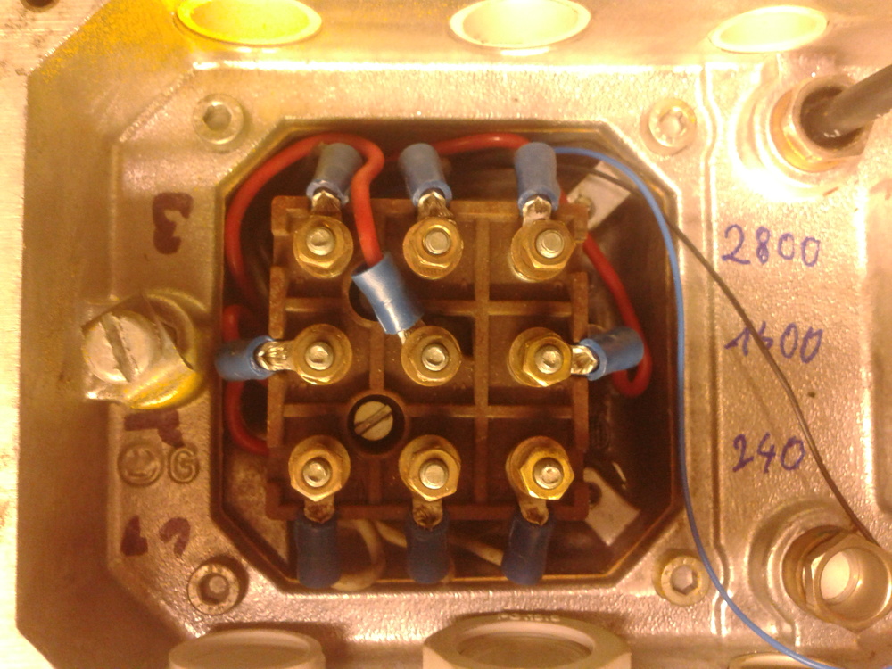 Přikládám fotku svorkovnice, jen pro zajímavost, jelikož třírychlsotních motorů se tu moc neukazuje a sám jsem toho při nasávání informací moc nenašel.