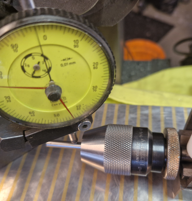 Malinkého Albrechta máme na mikrovrtačce. Na dílně nesmím fotit - takže bez obrázku. Ten je přímo na hřídeli 10 mm, ze které jsem vybrousil vřetýnko. S roubíkem 3mm hází do 0,01. Cenu si už nepamatuju, ale určitě to bylo přes 10k.