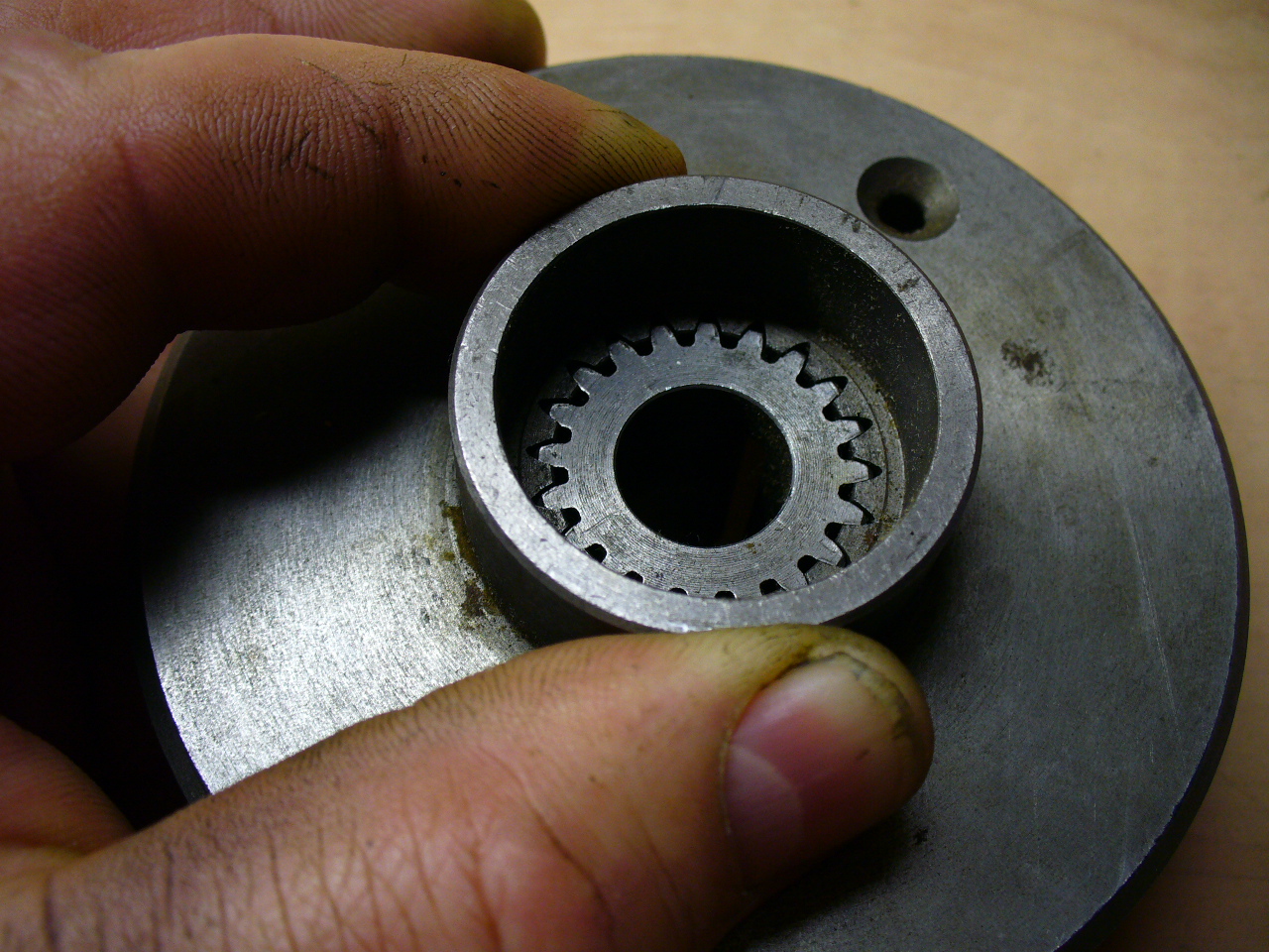 když budeš šikovnej tak v obvodu kde to ozubení je si navrtáš na děličce otvory,čtyři by měli bohatě stačit vnitřní průměr kde by normálně bylo vnitřní ozubení bude hlavový toho přesuvného kola (22mm) a do děr zalisuješ kalený kolíky,který si zbrousíš do tvaru zubové mezery.