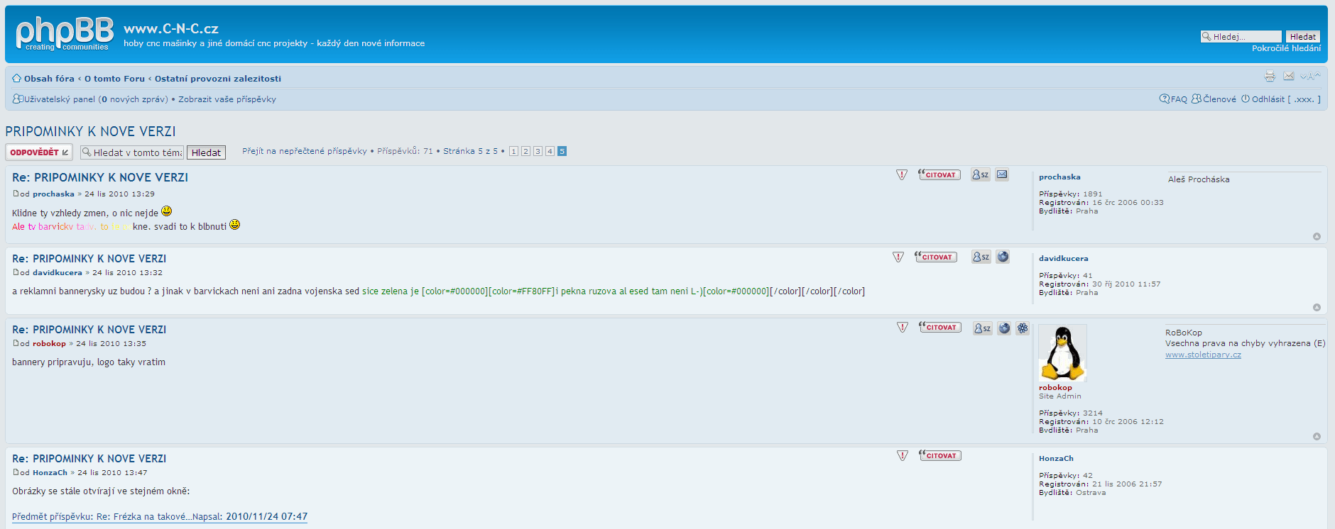 .Nešlo by ještě ve volbě Zobrazit aktivní témata udělat nějakou fičuru na omezení doby? Myslím hodinu ,2,6 a den,dva atd.Já jen ,že si přečtu něco u oběda a když si u večeře dřepnu ke kompu a dám "Zobrazit aktivní témata" ,tak to mám zas všecko a musím hledat,co sem četl a co ne.A ta volba Označit jako přečtené by mohla bejt u každýho vlákna.No snad moc neprudim