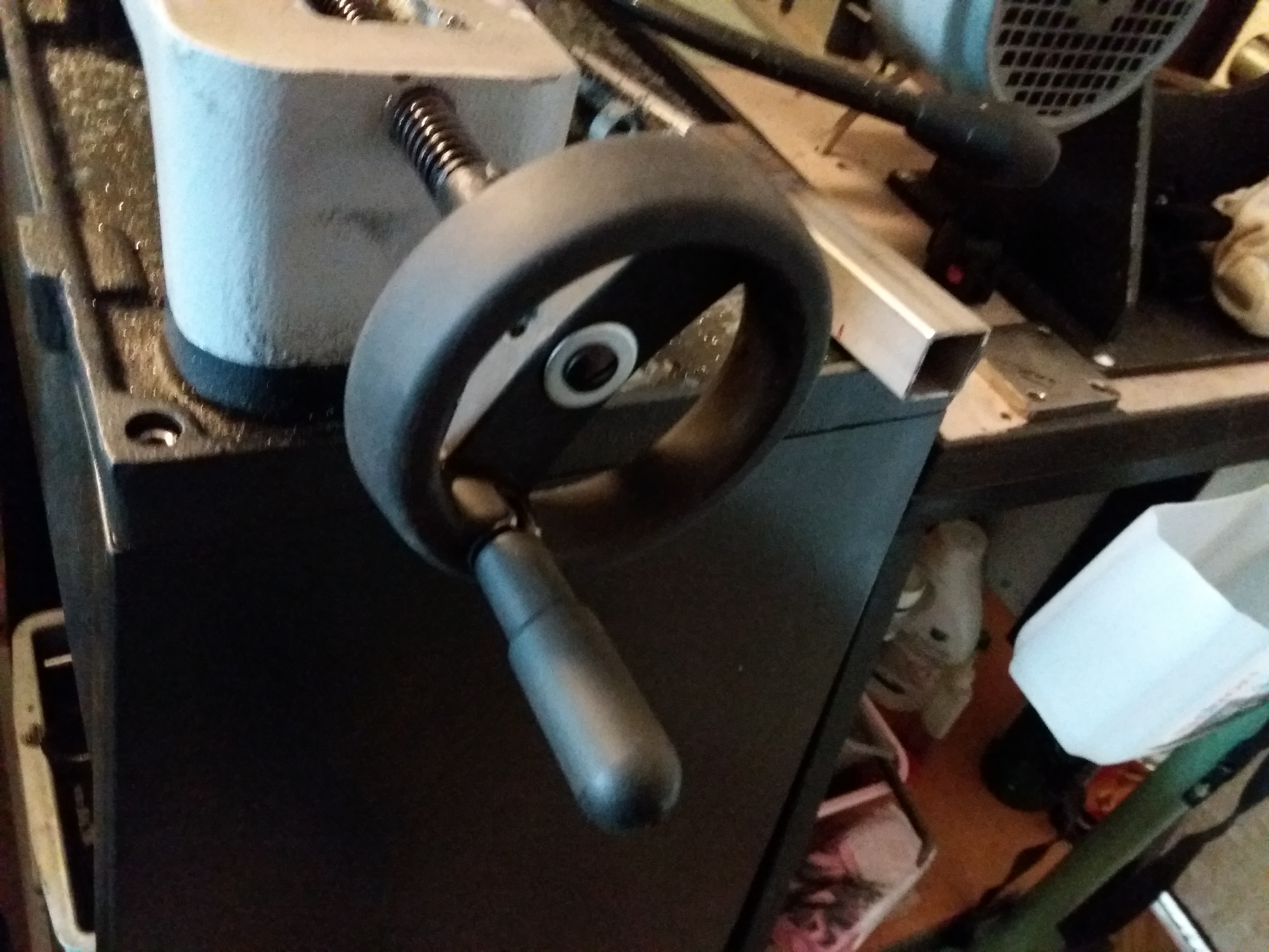 na píle som hneď vymenil tlačitko za vypínač .sadne tam uplne presne.Pri dlhších rezoch na rameno zavesím plastovú tašku s odpadom a odreže to samé...tiež som hneď vymenil tú sprostosť čo ovláda zverák.Koliesko má priemer 10cm.kluka je sklopná.fotky prikladam.vadí mi už len nízka stena na ĺavej strane na zbernej nádobe pre chladiacu kvapalinu a to že trysky chladiacej kvapaliny striekajú kde sa im chce len nie na materiál.pilu som dal na podlozku s kolieskami.