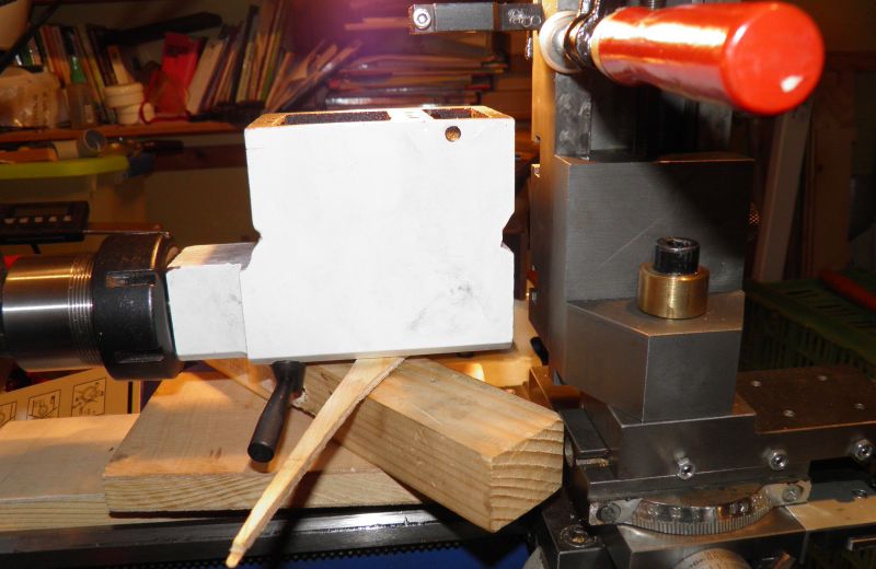 Také jsem zhotovil nový šroub, nejprve M10 a pak nakonec M12 a doplnil axiálním ložiskem v novém ložiskovém tělese. Není se čeho obávat. Chce to jen univerzálku se samostatně stavitelnými čelistmi na případnou výrobu lož. tělesa. Jinak na Googlu je celý postup ůpravy" Fitting the Tailstock Robobits"