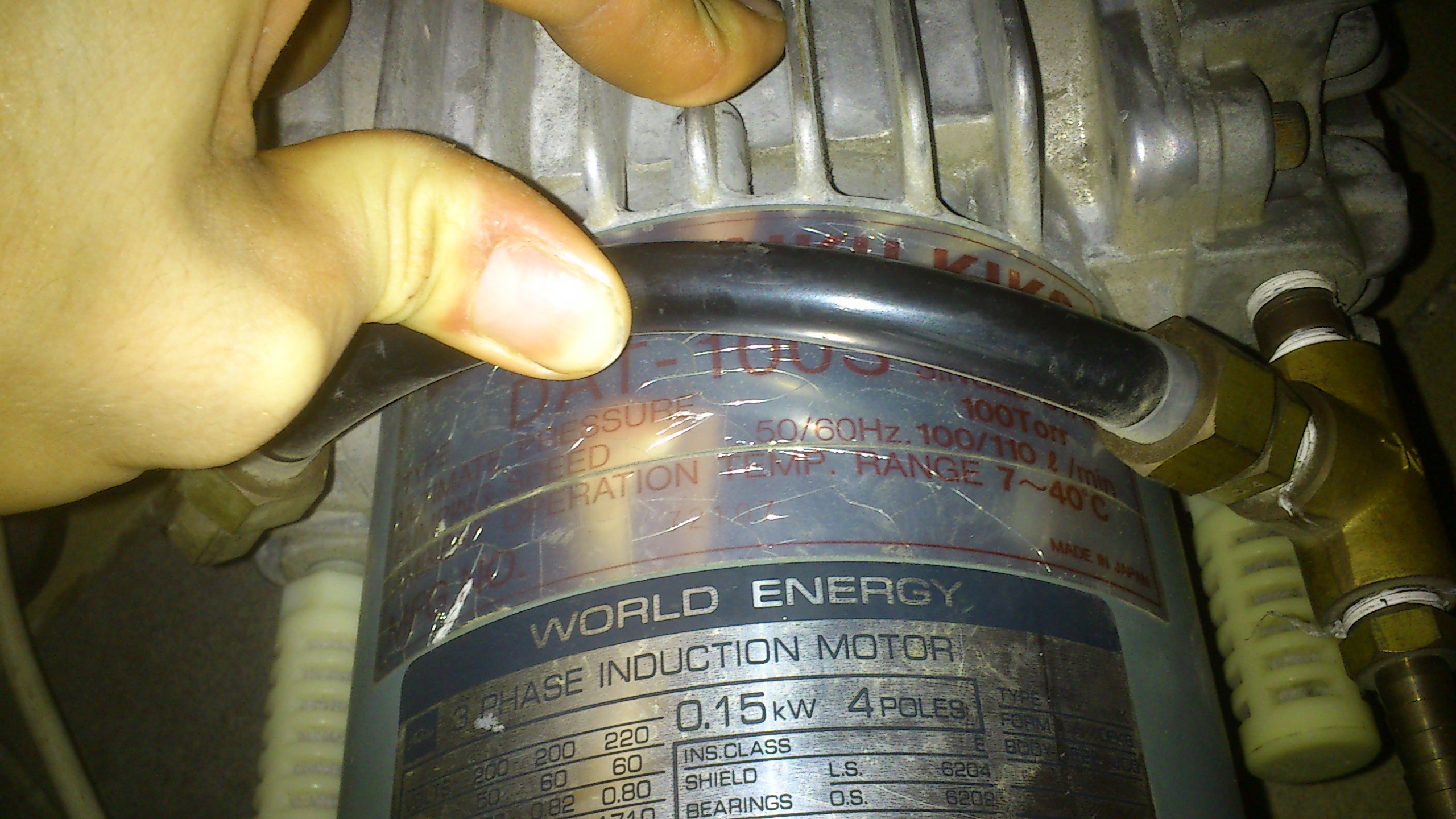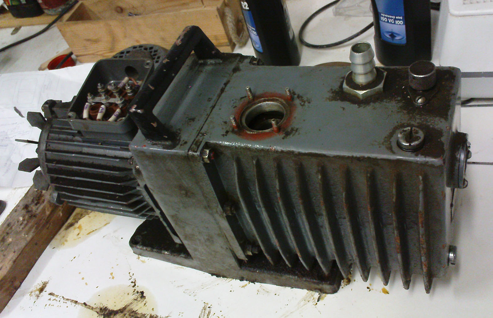 pánové, sehnal jsem rotační vývěvu, ale evidentně tam nahoře něco chybí. Neví někdo co? Abych věděl, co mám hledat. A ještě jak poznám na kterou stranu se má točit. Nebo je to jedno?