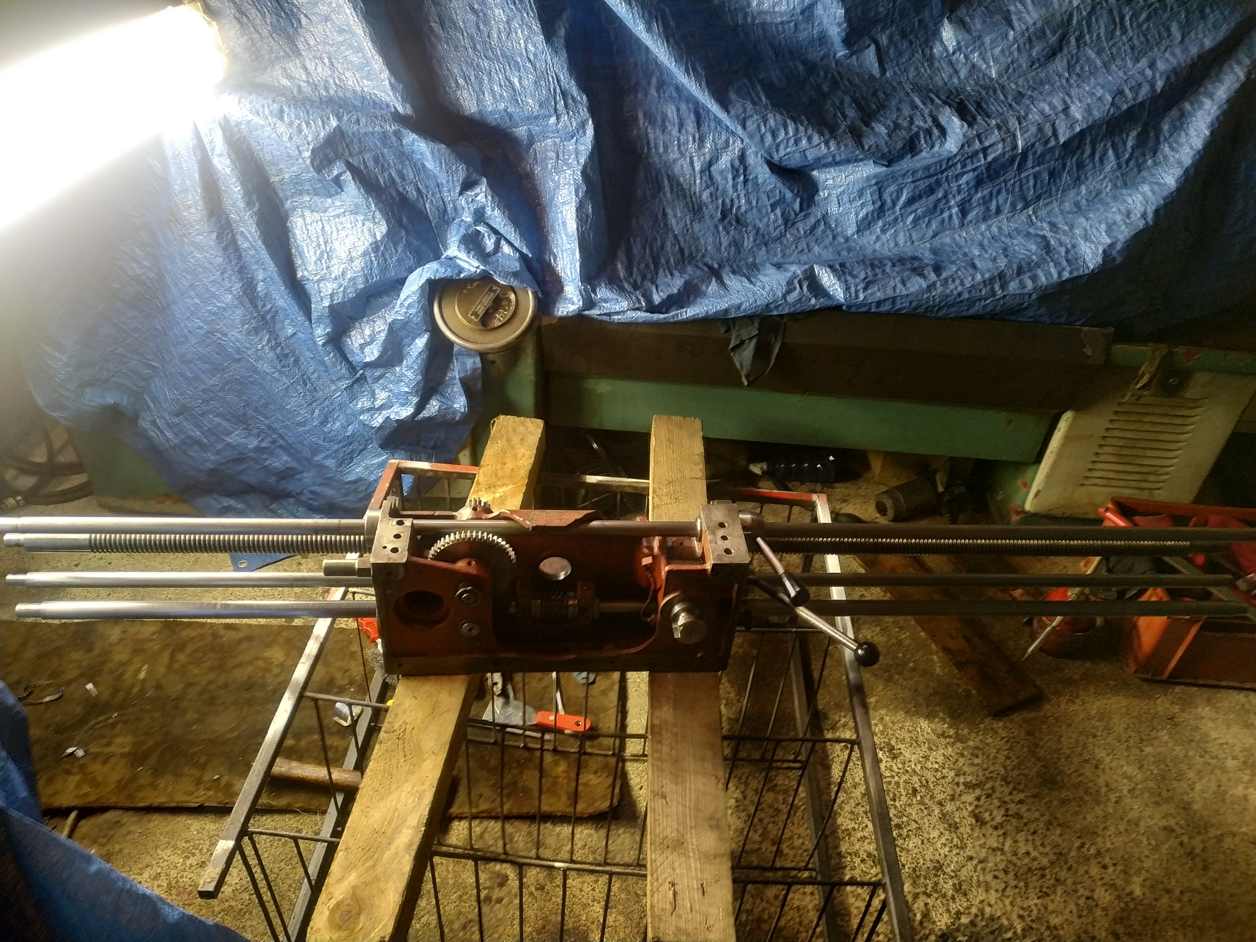 Mně přijde, že to ani jinak nejde, než dát nejdřív saně a pak teprve suportovou skříň. Saně mají uvnitř suportové skříně tenhle díl a mám pocit, že by s jeho přiděláním na saně člověk dost bojoval, kdyby byla na místě skříň... jestli by to vůbec šlo.