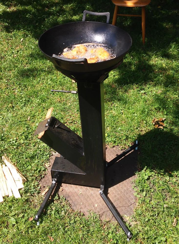 Dým je jen do doby, než se to prohřeje. Pak už to vlastně spaluje plyny ze dřeva a nekouří. Když tam přiložíš nové dřevo, tak na chvilku zakouří a pak zase jen spalování plynů. Ve tmě je vidět na výstupu nafialovělý plamen. Když se na chvilku zavřou ta dvířka podepřená třískou (chybí dodělat regulace vzduchu) a pak je otevřeš, tak ty plyny bafnou a je to vidět i slyšet. Zatím s tím experimentuju a získávám zkušenosti, jak a na co by to šlo použít, případně co vylepšit.
