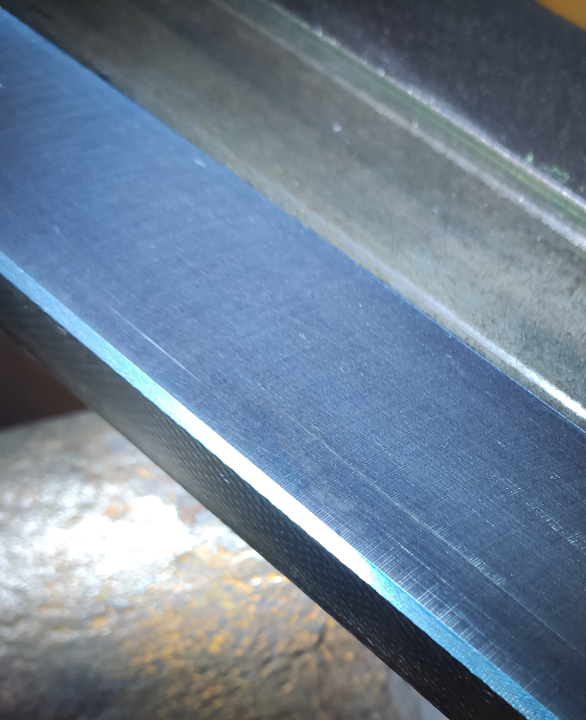 Na kalené plochy , udělam buď sáňky na to zaškrabané vedení koně podle ktrereho to přebrousím suportovou bruskou . Nebo to nahrubuju ruční pásovou bruskou a zbytek doškrabu. Škrabák s keramickou destickou to celkem bere