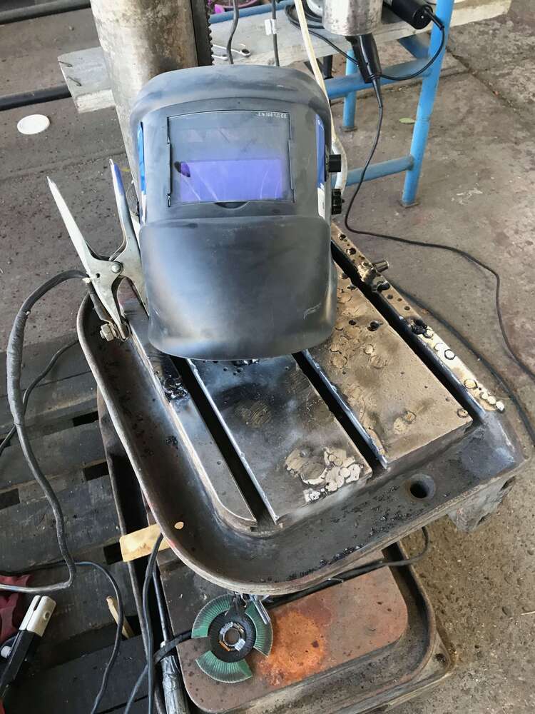 Tohle bych snad ani nevyvařoval (nepájel). Ofrézoval bych to po T-drážky a přišrouboval k tomu dva ocelový plechy... Na ty boční taky úzký. Výměna rozvrtaných je pak snadná