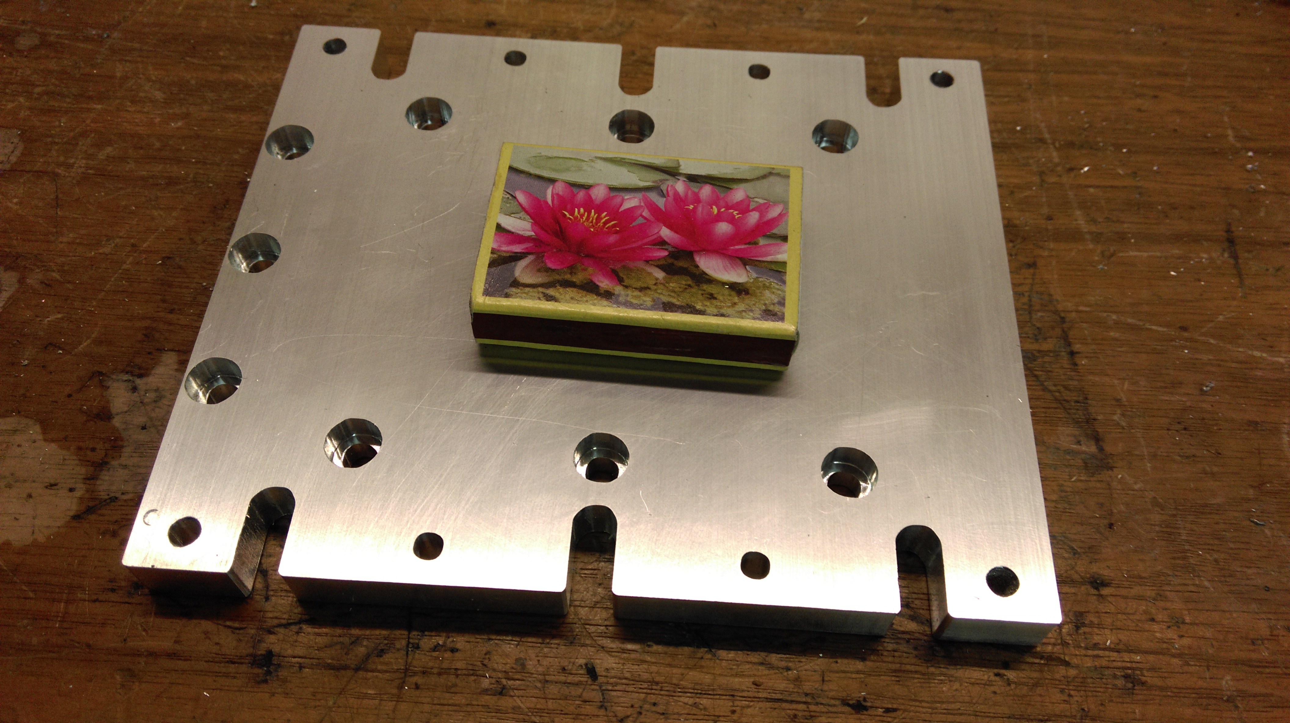 tady už vyfrézováno - pro srovnání krabička zápalek :D rozměr 150x120