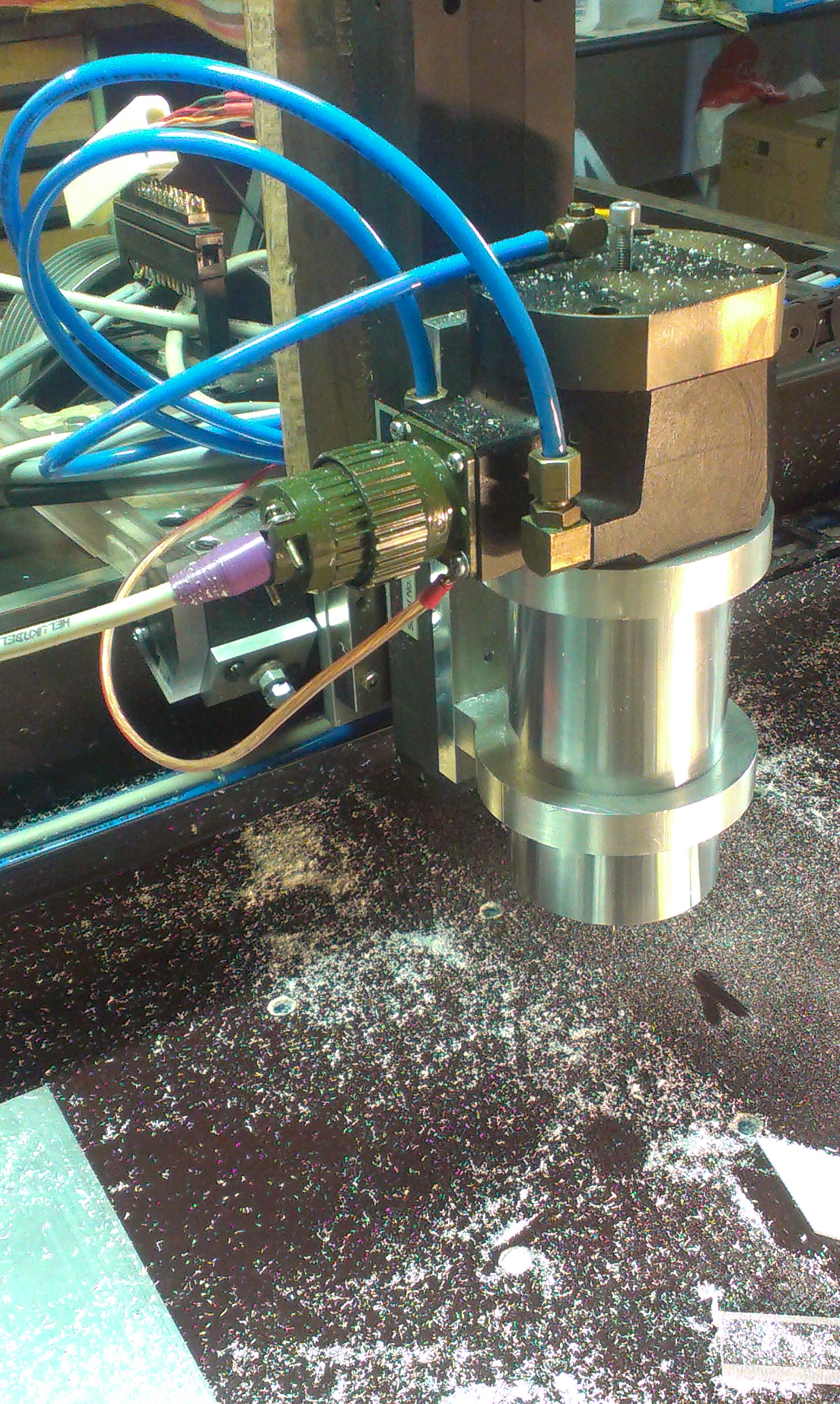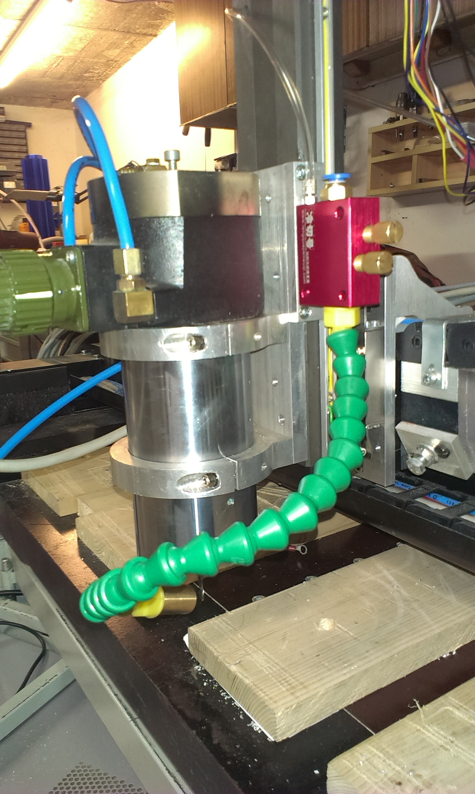Pro rejpaly - bud bude sepnuty chlazení mlhou v pripade obrabeni duralu, nebo spustěný kartáče a odsávání pro pobrábění překližek a jinýho "suchyho" materialu. Hrozně to práší.
