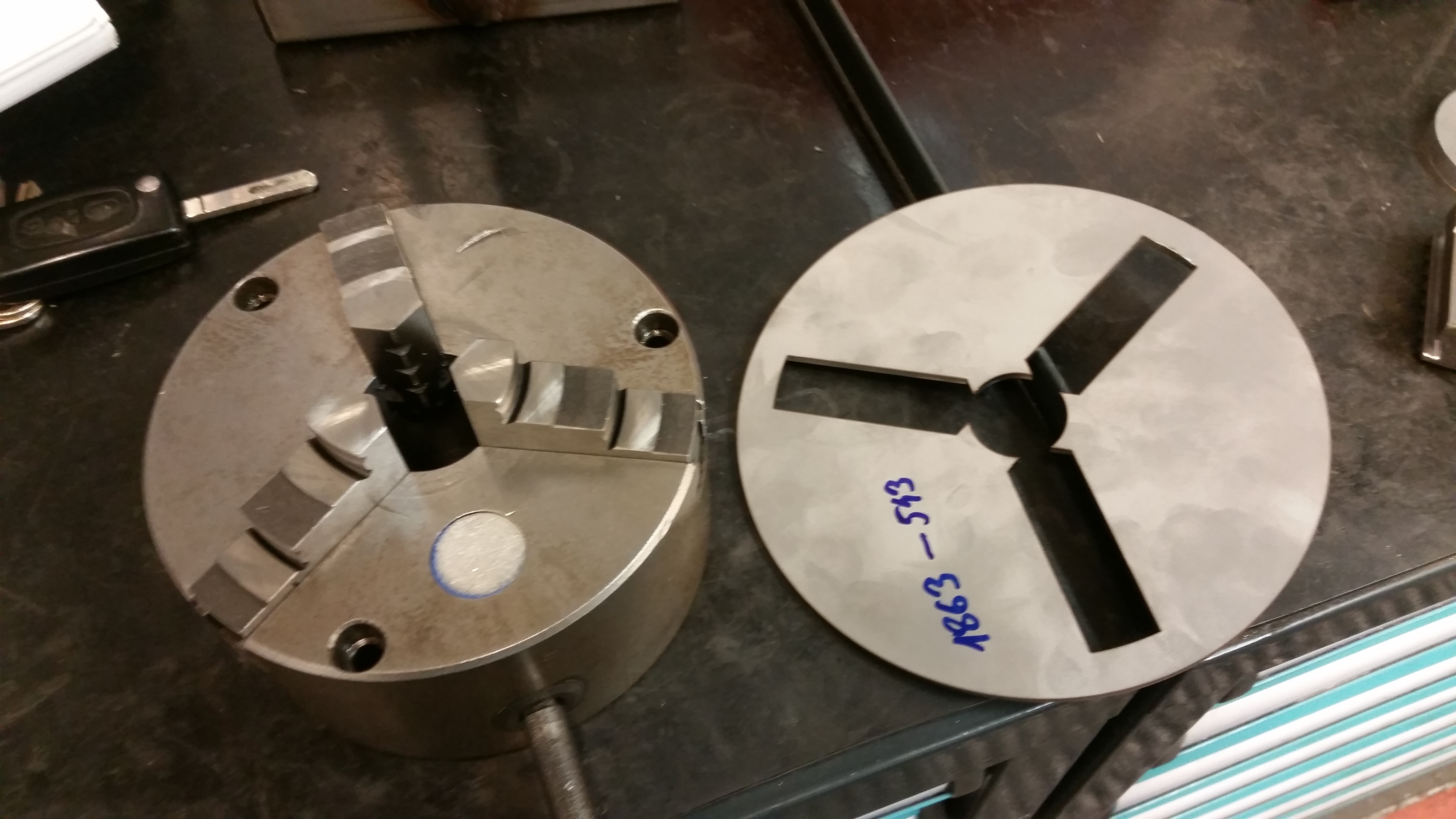 Ne je to "trojka" nerez a fikl jsem to na laseru. To sklíčidlo je IU 125 /Svitavy/. Na 100 to je z 2,5 a na 80 z 2 síly. Jde o to aby to nepřečnívalo přes ty horní "schůdky" čelistí. Čelisti nebrousím, normálně je "protočím" nožem.