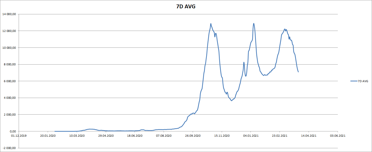 Z nějakého důvodu, nevím jakého, se vlna vždy zastaví při počtu cca 80 000 - 90 000 positivních/týden. Můžou v tom hrát roli spíš sociologické jevy - na základě čísel si víc lidí začne dávat víc bacha, přibrzdí v některých svých "aktivitách" atd. Pak se to zase po nějakém poklesu otočí nahoru, protože si plno chytráků začne myslet, že už je to v suchu a začnou "rozvolňovat".