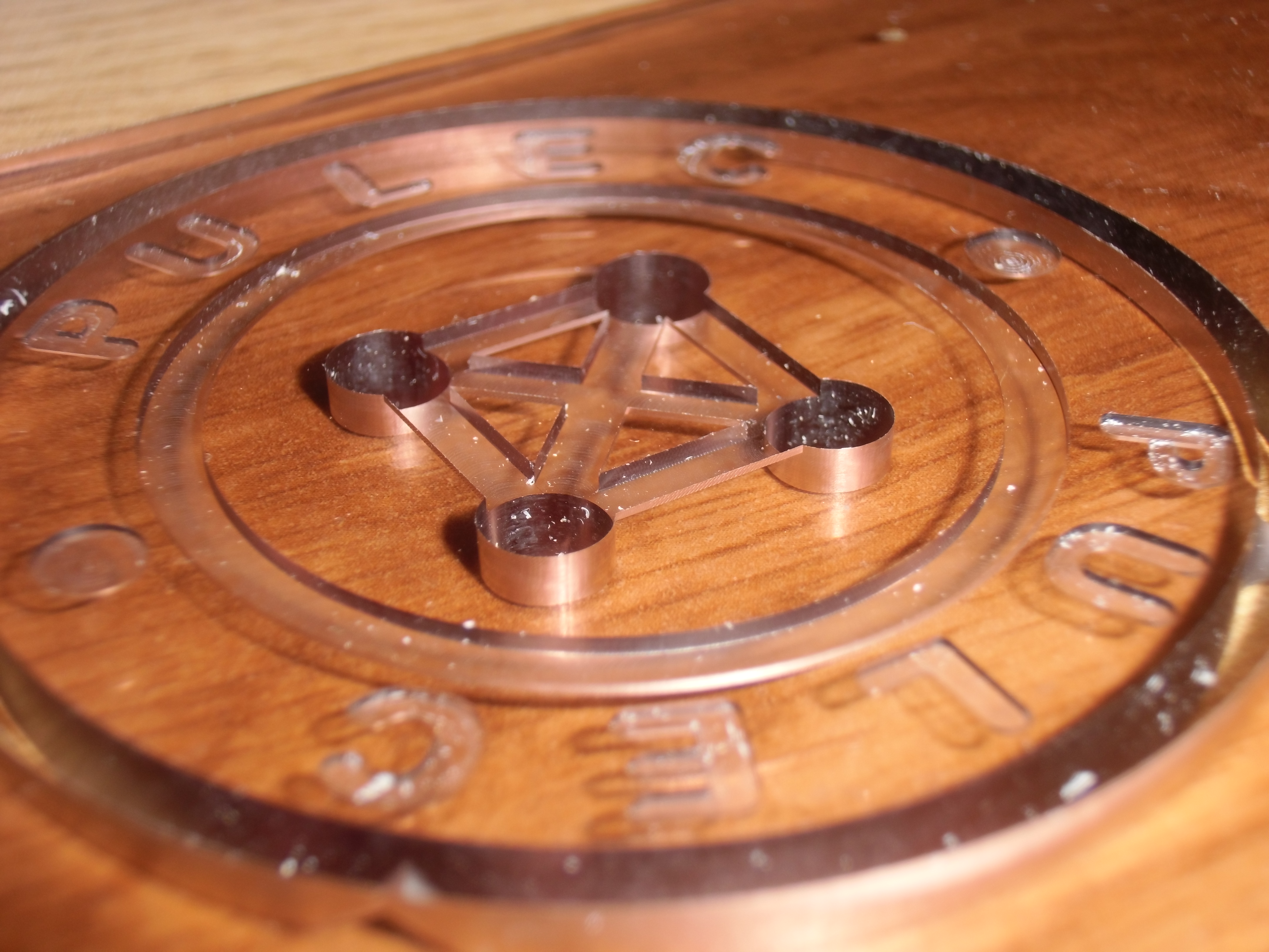 Před par dny jsem frezoval z recese knoflik, netvrdim ze by to neslo udelat lepe, třeba pismo reverzne a pod. nicmene byla to takova rychlovka.