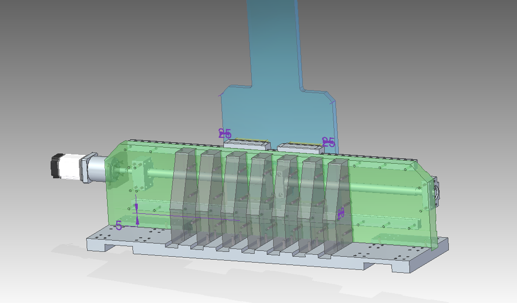 Na modru planujem dat linearne vedenie po celej vyske.Tak aby som dosiahol vysuv 400 mm.