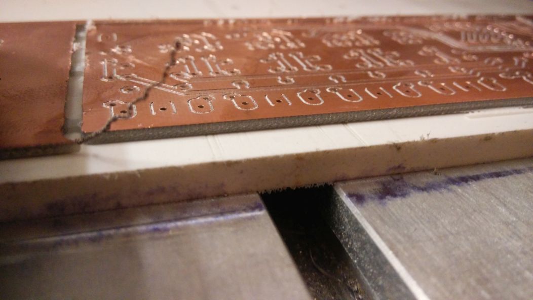 Ale určitě v tom hrají roli otáčky (já jedu na 24000 RPM) a hlavně to, že já tišťáky leptám, takže kolem okraje není měď a frézuju jen laminát bez mědi.