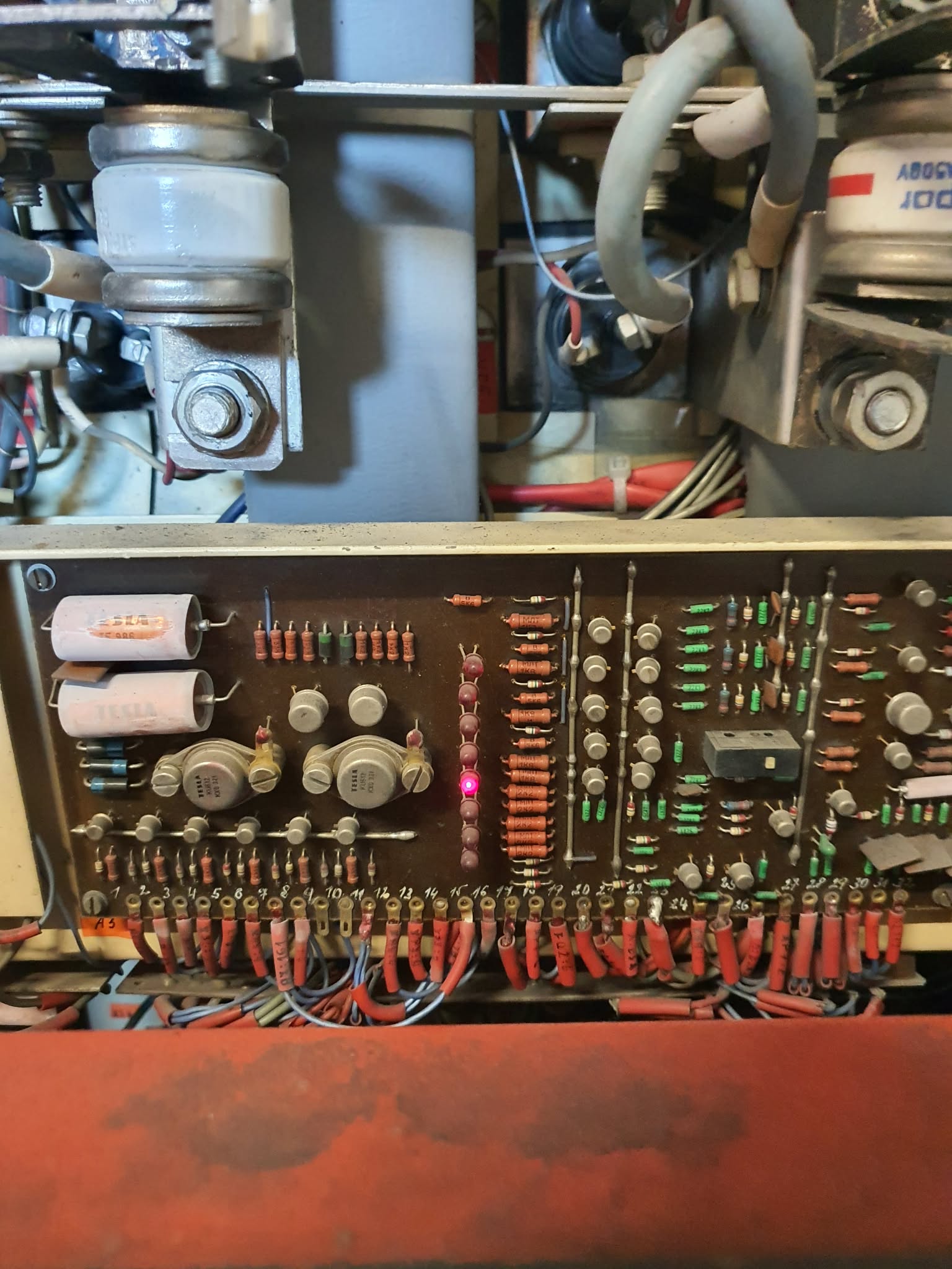 Mám soustruh SUI 50RP, ve kterém je systém Tyros. Koupil jsem ho v takovém stavu, v jakém je. Stroj spustí řízení atd., ale vřeteno se netočí. V okamžiku spuštění vřetena se rozsvítí červená kontrolka jako na fotografii. Má někdo podrobnější dokumentaci a ví, co tato kontrolka může znamenat?