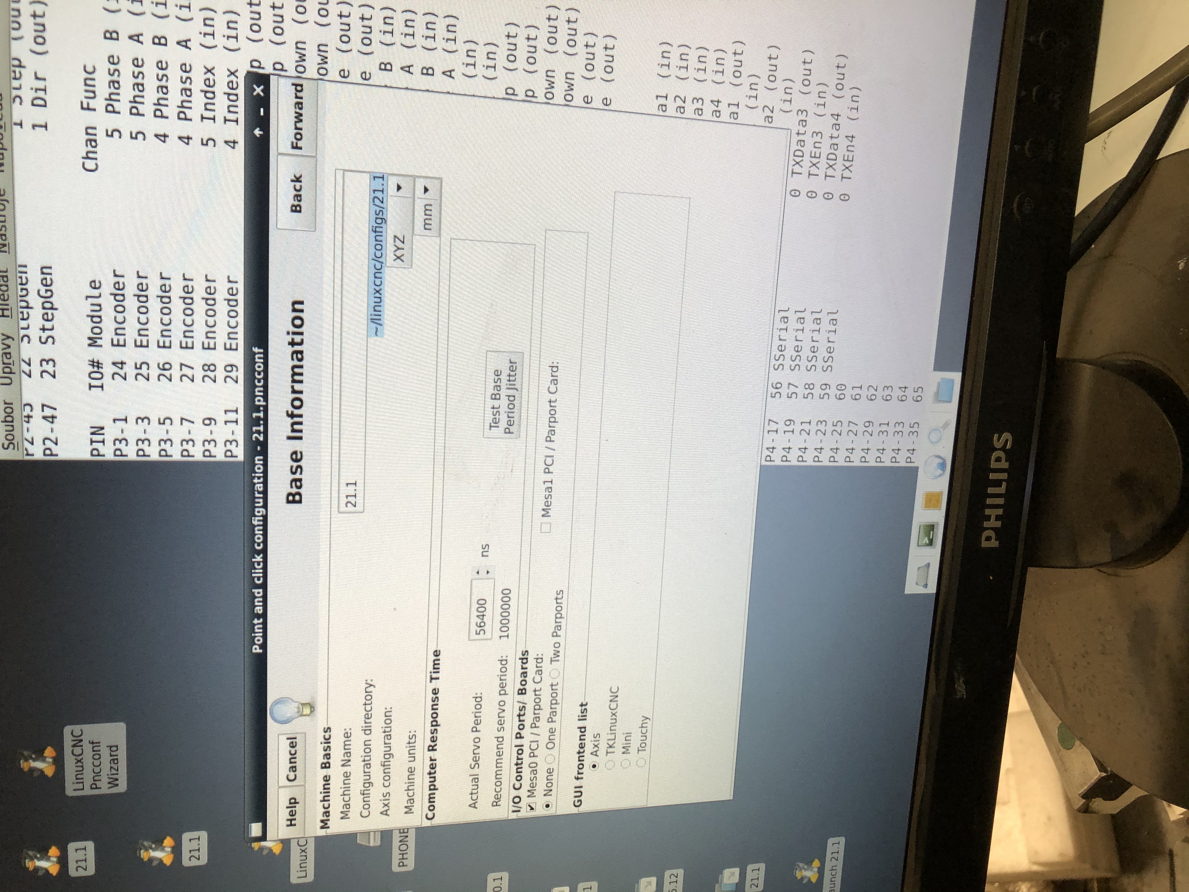 Když jsem ještě napojil a nastavil enkoder tak linuxcnc vyhlásil chybu.