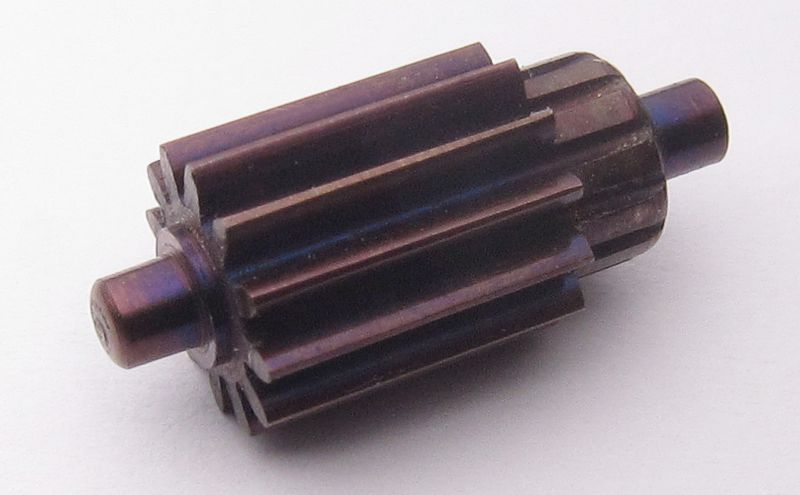 Pár odvalených kousků ze včerejška v modulu 0,6 a jeden cykloidní dělený hodinářský pastorek: Pastorek po zakalení a popuštění: