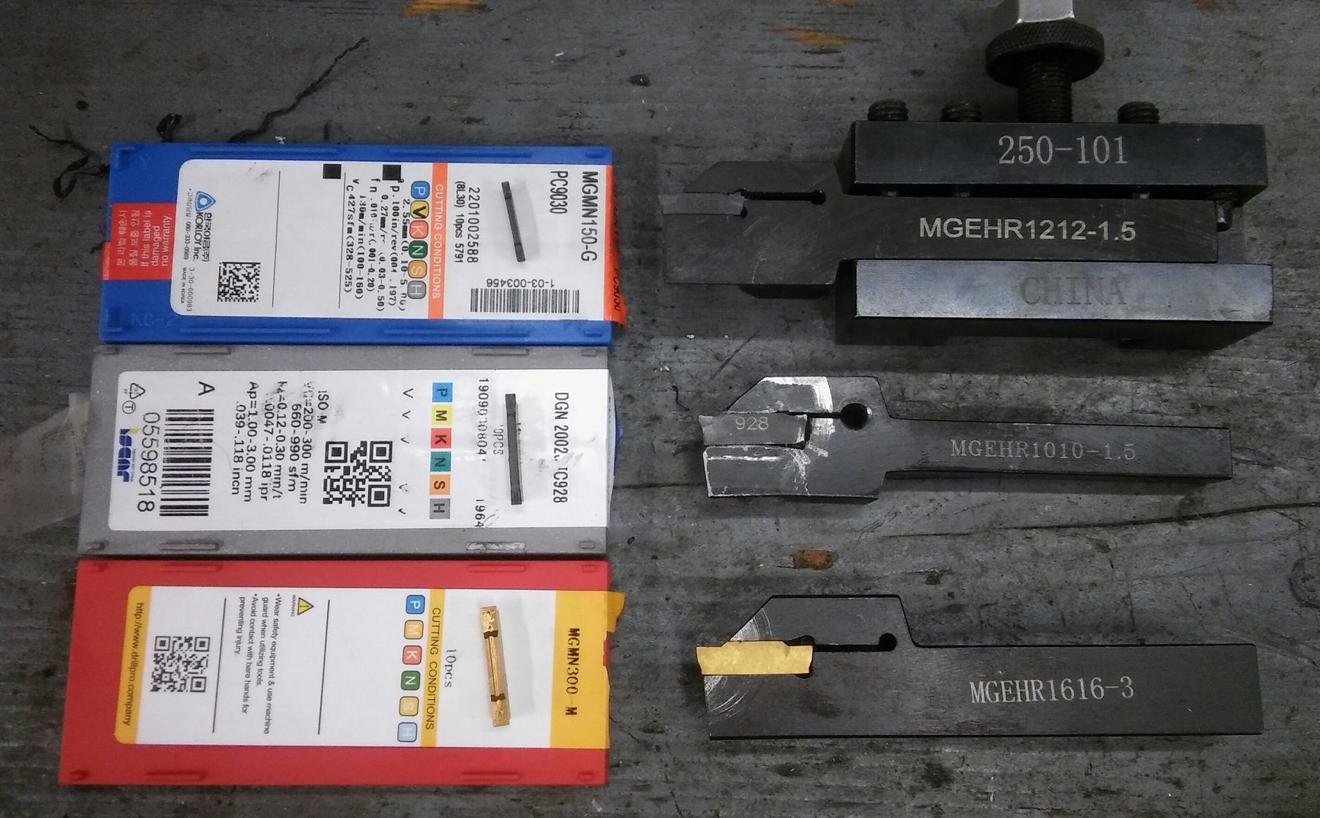 Dawe píše: 15. 4. 2020, 2:37 Mne nejlip z tech cinskych 2mm inseru funguji ISKAR DGN 2002J trida karbidu IC928 ... Pasuji po male uprave do MGEHR drzaku.