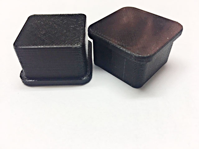 K Mark two, tu cenu mi vyhodil Google a taky mi přišla pekelně nízká. 3DW ji nabízí za těch cca 400 a já ji mohl mít 2 měsíce starou za 250. Jsem ale ve při s 3DW a bez záruky a technické podpory jsem do toho nešel. No a na závěr téhle veskze neplodné diskuze. Ucpávky do jeklu 30mm. 15 minut práce s inventorem, pak 5 minut Simplify3D a na závěr 94 minut tisku. Váha 1 kusu cca 6g, materiál co-polyester nGEN, je to takové moderní nesmradlavé ABS, použitý profil FAST a tedy cena cca 6 korun za kousek + opotřebení tiskárny. Rozměry samozřejmě sedí v desetině mm.