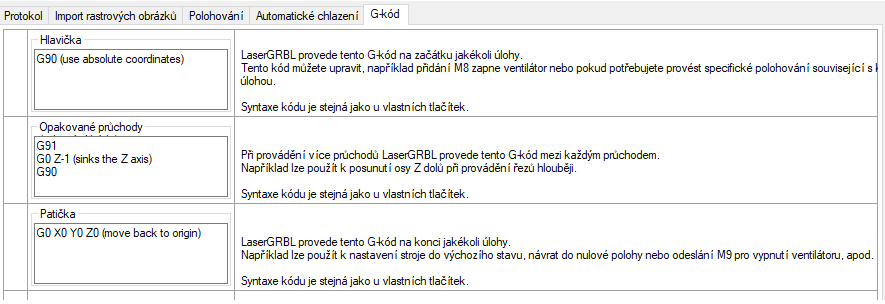 GRBL -> Nastavení -> G-kod -> Opakované průchody.