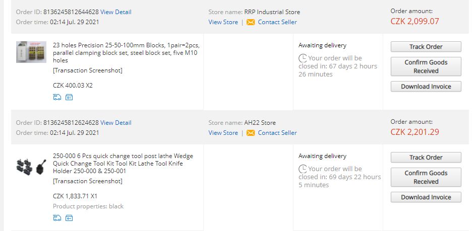 A proto se s druhou objednavkou vzdy ceka az tu prvni odesle... sorry ale s timhle bylo treba vzdy pocitat.shaolin píše: ↑5. 8. 2021, 7:02 Takže mám výsledok problému na Ali.
