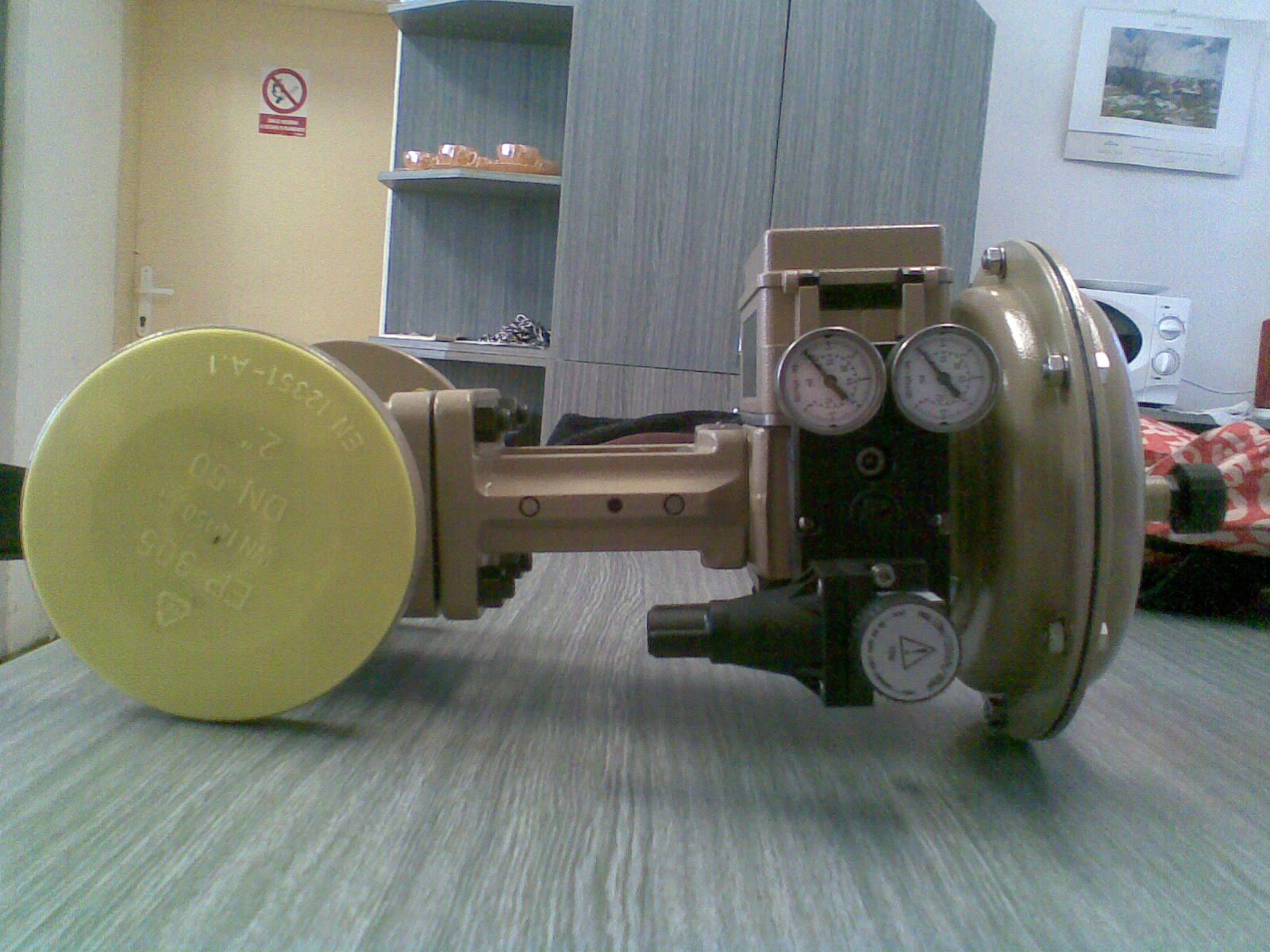 Regulační ventil s pneupohonem a digitálním pozicionérem. Má oproti stávajícímu elektropohonu tu přednost, že dokáže dělat bleskově rychlé regulační zásahy, což je u tohoto výměníku zásadní.