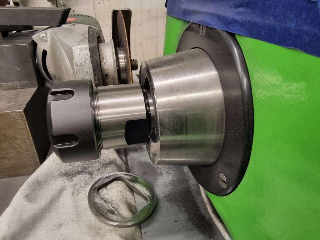 Pro tento stroj je těžké najít nástroje, protože používá nástroje MT4 s prodlouženou špičkou a novější nástroje MT4 se do kužele nevejdou. Upravil jsem hlavu vřetena tak, aby umožňoval použití standardních kuželových nástrojů, ale také jsem ponechal dostatek úložné kapsy pro zajištění pozitivního pohonu původních trnů.
