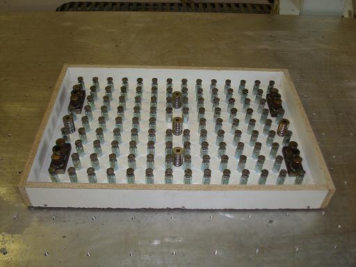 Rastrová deska je určená na upínání obrobků v CNCčku. Na spoustu věcí je tohle řešení vhodnější než "T"drážky. Žádné měření jsem neprováděl, tepelná roztažnost bude souhlasit s tím co se udává, to snad ani nemá cenu měřit (je to dané složením). Pevnost jsem neměřil taky, zatím jsem neměl potřebu. Ta rastrová deska je pevnostně předimenzovaná. Moje zkušenosti jsou zatím takové: