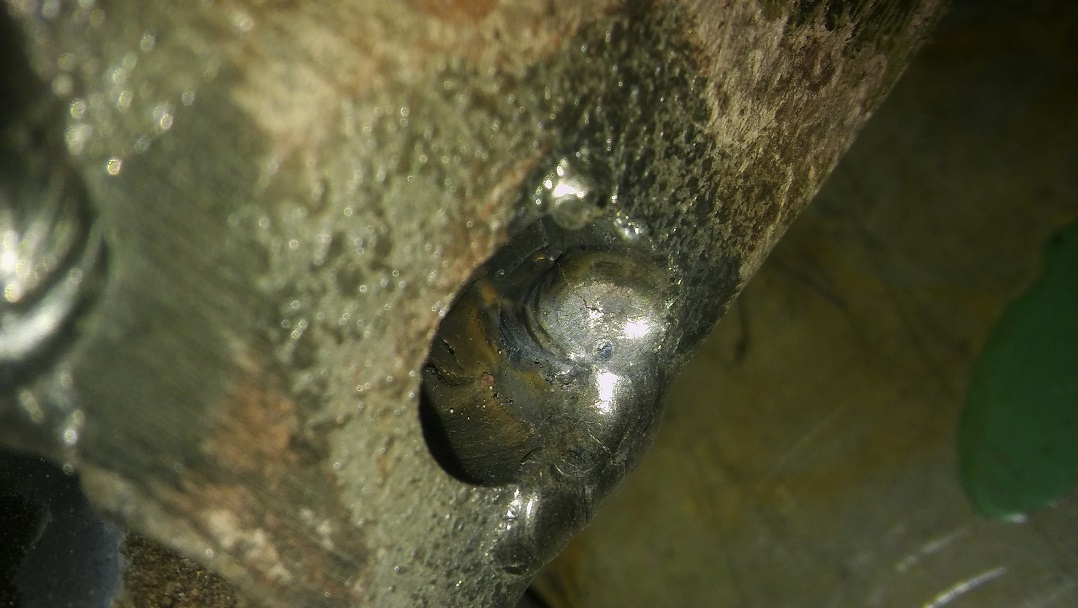 Tento postup spolehlive produkuje svar bez trhlin, ale staci jednu vec osidit a riskujes pritomnost kritickych trhlin. Viz nasledujici foto ukazky trhlin na tom dorazu.