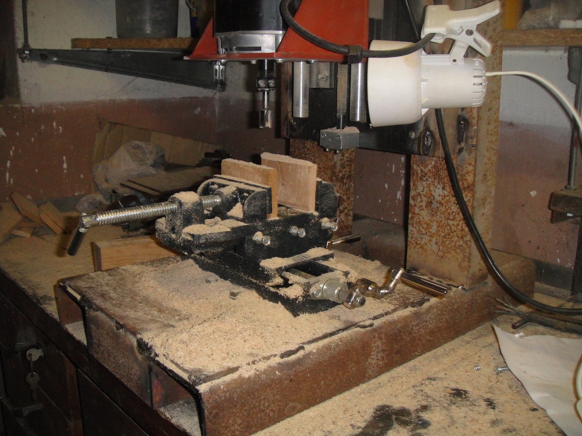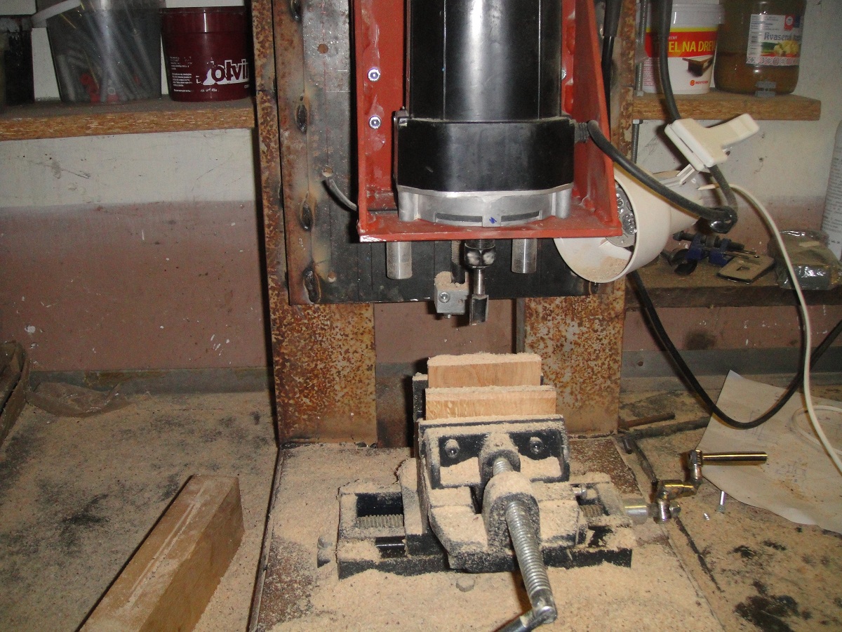 Uz ma rozčuľovalo robiť dlaby dlátom, tak som si zbúchal taku jednoduchú dlabačku a frézku na drevo.Krížový zverák je čínsky za 30E. rybiny tam su odfláknuté, ale dali tam aspoň skrutky na nastavenie vôle.Motor mam z starej poľskej frézy a podopreté tyče ,trapézový šrob a železo z kovošrotu.K tomu všetkému bolo treba už len zváračku,nejaké uholníky a jedno poobedie.