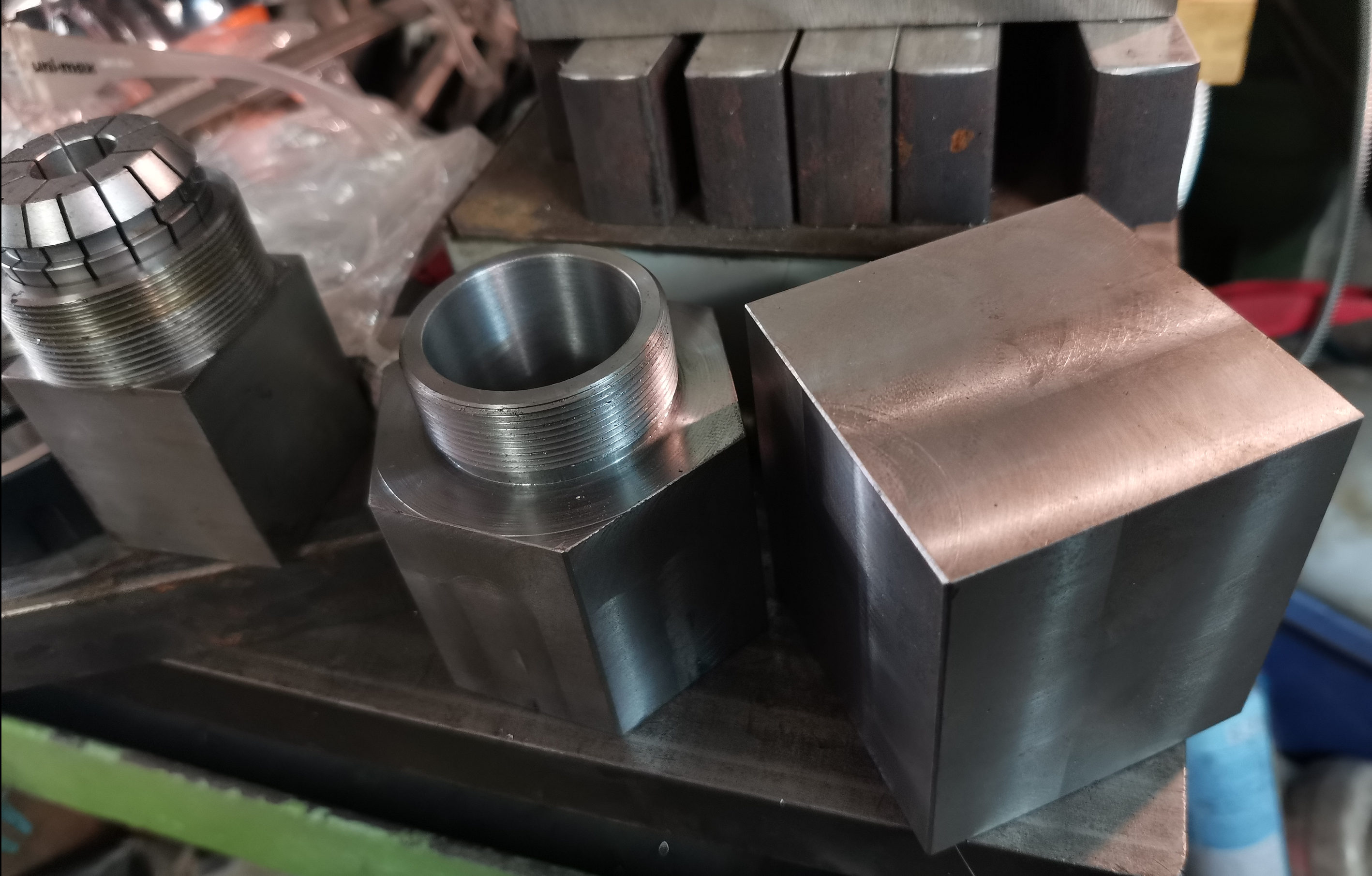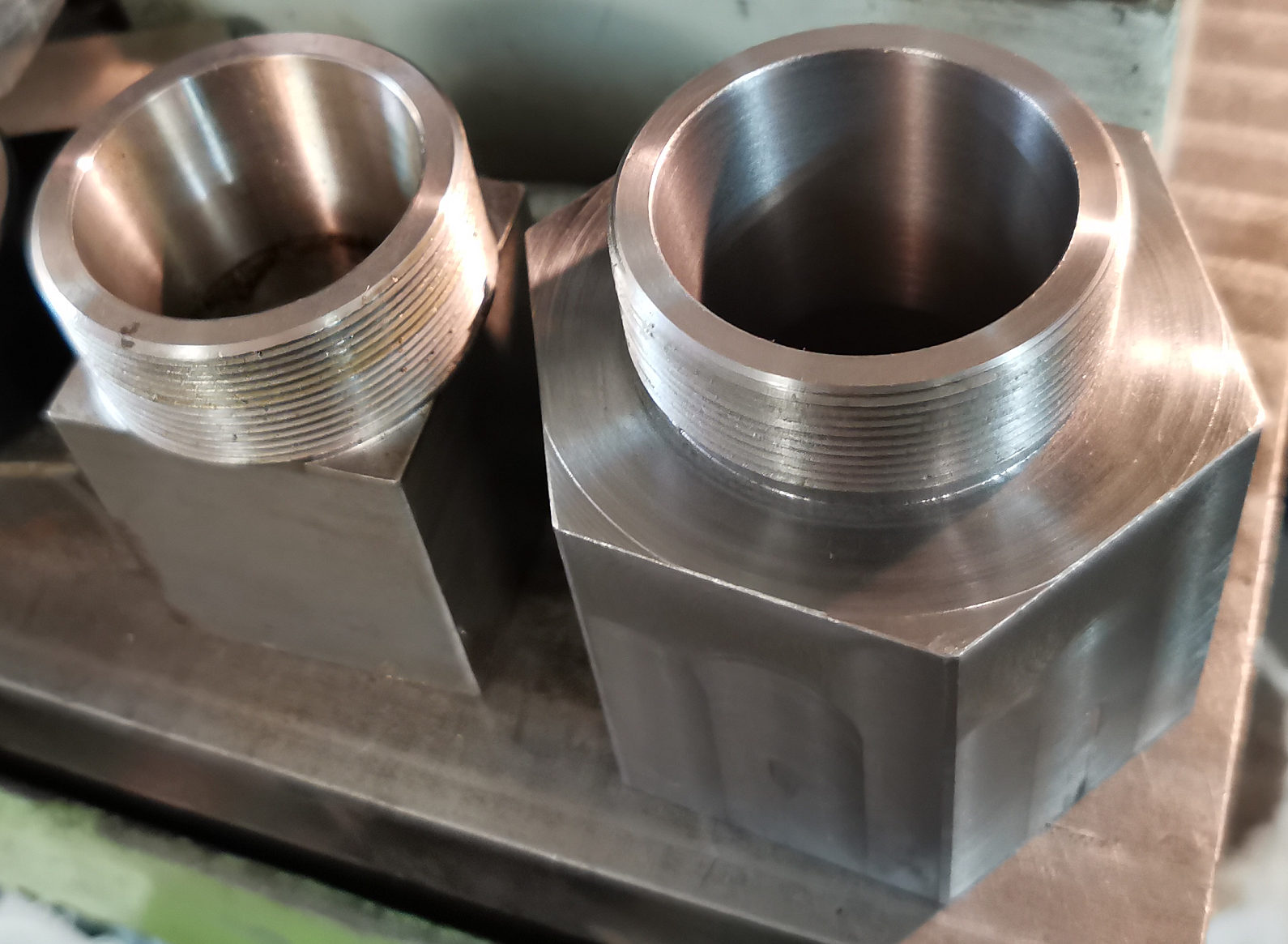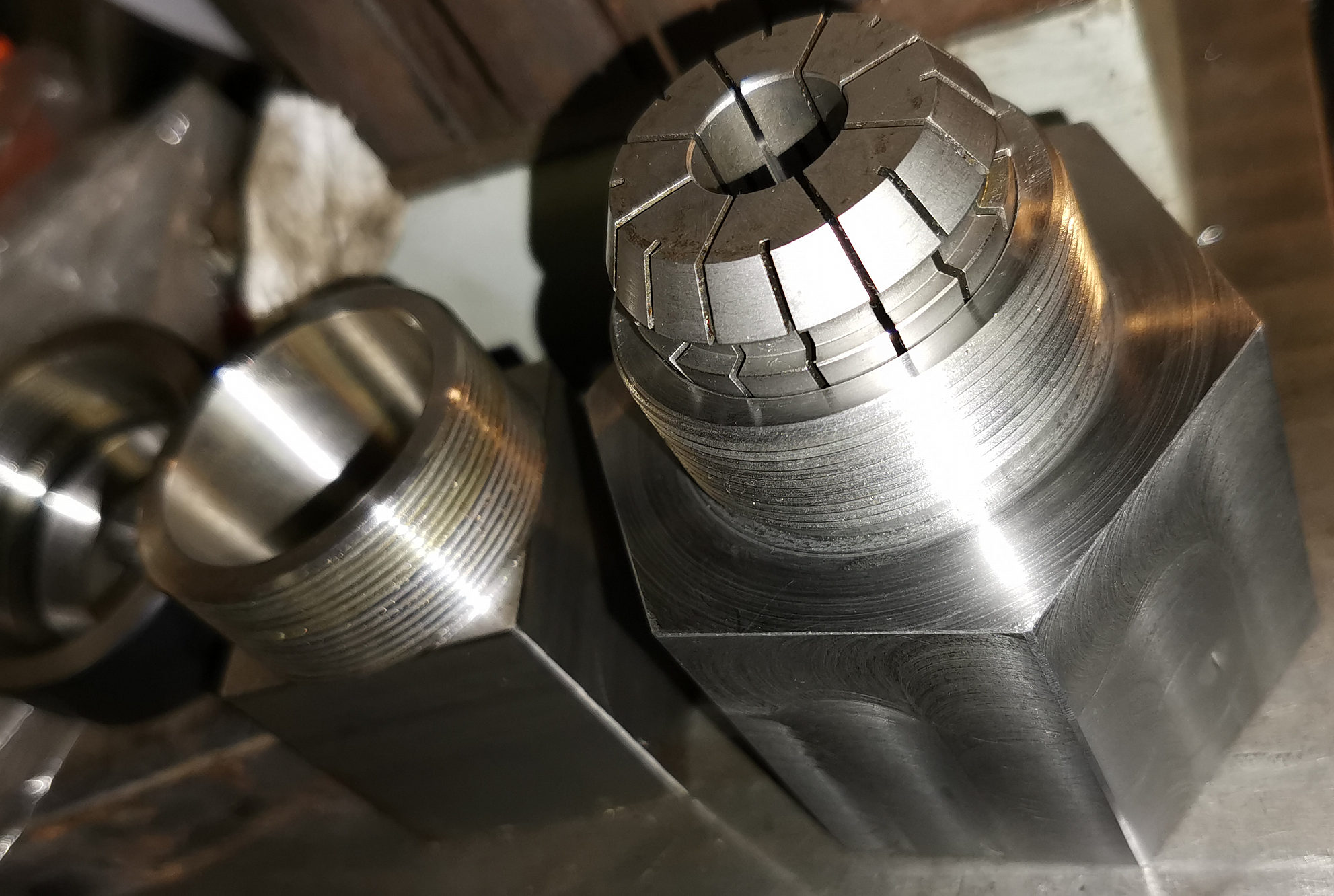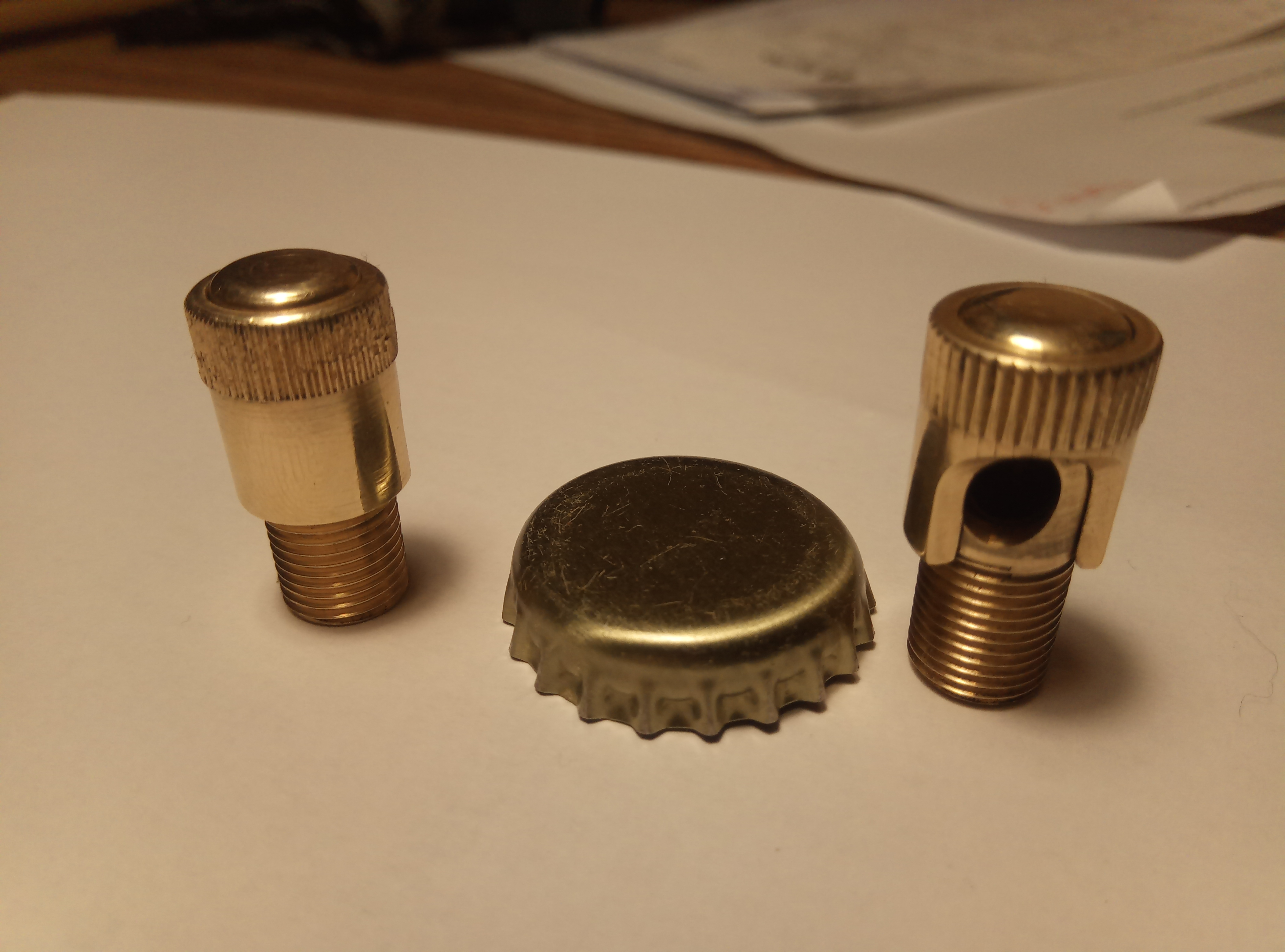 Taká blbosť, ale predsa. Kto pozná frézku Fus22 tak vie, že do horizontálneho trámu treba liať olej na mazanie vedenia trámu. No lenže na to už nebolo myslené ako jednoducho tam ten olej naliať. Tak som minule prevŕtal ten trám a narezal závit M10x1. Teraz som urobil takéto blbosti na naliatie. Obyčajnou olejničkou teraz len nalejem olej, otočím o 180 stupňov a je zavreté. Hlavička drží len pomocou drážky a oceľového plechu z listových mierok. myslím hrúbka 0.10. už je to nerozoberateľné. na jednej hlavičke sa mi nepodarilo pekne to vrúbkovanie, pritom som robil všetko tak isto.