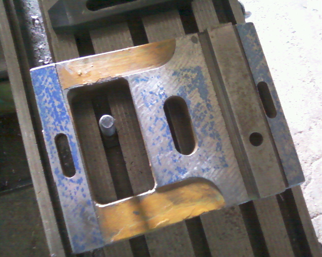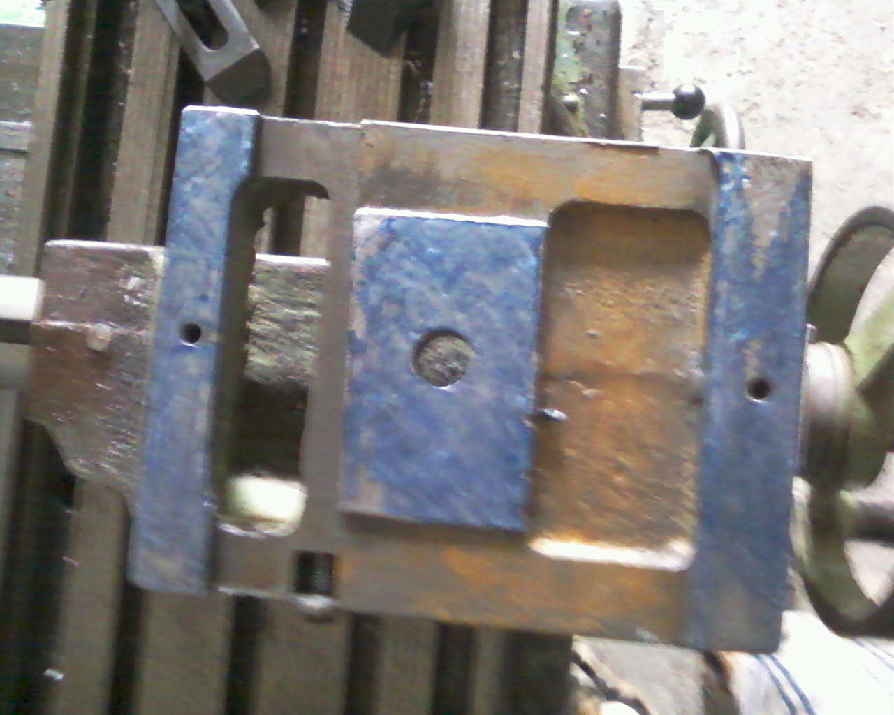 jo už hlava vychladla, pujde to řešit v pohodě, vložim do dělící roviny plech, shodou okolností mam zrovna bronzovej tloušťky 0,84mm (jmenovitě má mít 0,8) a s ním v dělící rovině jsem pak už v ose, teda při zasunuté pinole 0,01mm mimo osu a připlně vysunuté (130mm) 0,02mm, ještě uvidim, o to udělá, když ta napevno přitáhnu na lože, ted to tam jen leží
