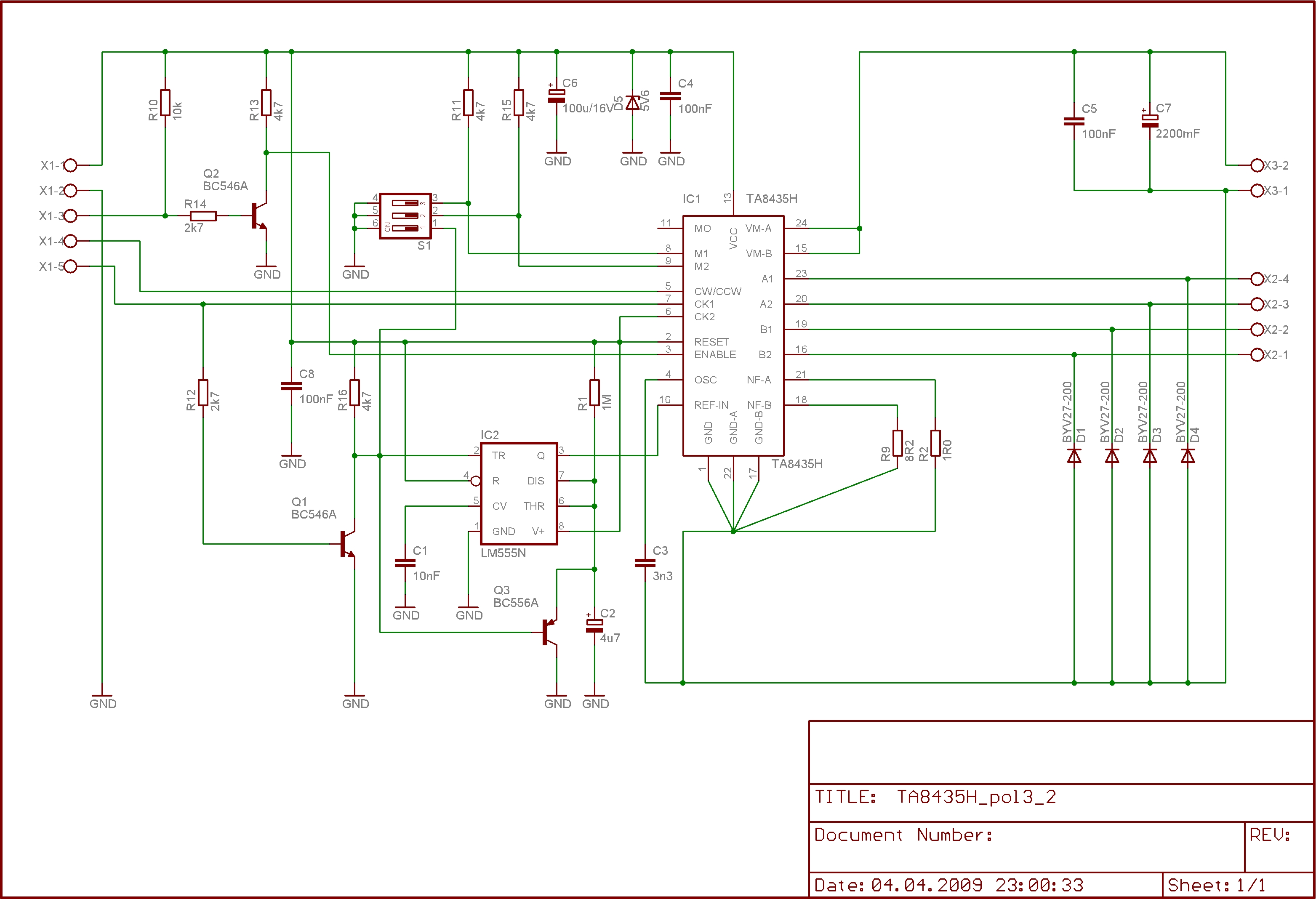 7. Mezi V+ a zem taky velkou kapacitu. Pokud to hodláš použít na 10A pro fázi tak aspoň 5G nejlépe rozložený na víc kondenzátorů pokud to nebude speciál kondenzátor pro pulzní provoz.