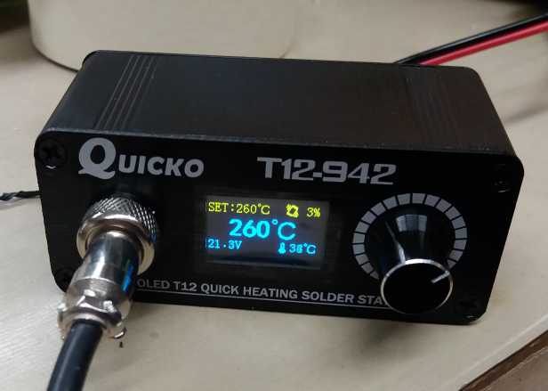 S touto verzí jsem celkem spokojený. Celkem se mě zamlouvá pohyboví senzor. Regulace pracuje velmi rychle, pero je ohřáté za pár vteřin. Se spínaným zdrojem jsem se vešel do krabičky 130x45x90. Zakoupil jsem regulaci i bez displeje https://www.ebay.com/p/DC-12-24v-Mini-T ... 7675.l2644 . To už dnes cpou i do pájecího pera. Pro někoho kdo nepotřebuje koukat na displej a teplota stačí nastavit orientačně perfektní řešení.