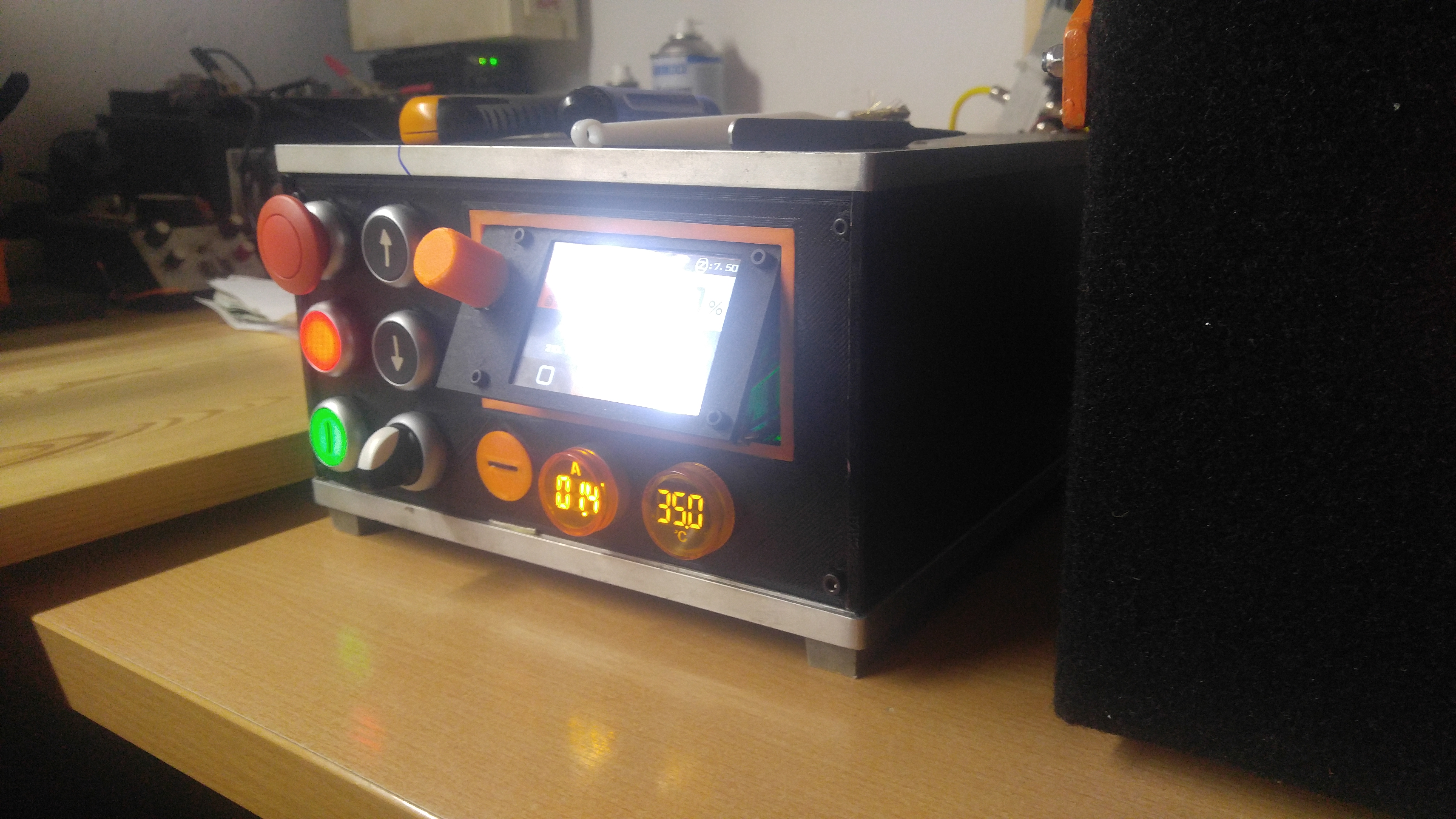 Tak jsem zase trochu pokrocil se stavbou toho meho monstra Jeste je toho hodne co je treba udelat, ale tiskne a to je hlavni Na tom odvijeci jsou cidla ktere hlidaji konec filamentu ale i zaseknuti/zamotani civky. Vyhledove uvazuji o jinem extruderu/hotendu. Mozna vodni chlazeni. Jo a ten fan v tom videu co huci po zapnuti musim vymenit, ten je v haji