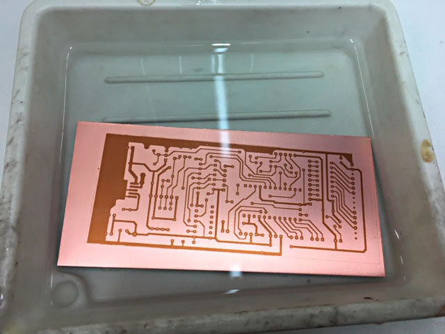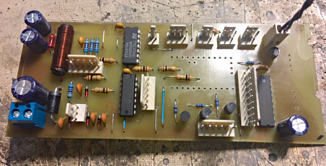 Orvat se jak zvíře bylo záležitostí několika málo hodin a večery jsem věnoval práci, přesněji plošňáku na MN80. Používám velice historický návrhový systém Protel, původně ještě pod DOS. Když jsem si ho kupoval, tak cena byla skoro půlroční plat, ale dostal jsem k tomu veškerou slušně okomentovanou dokumentaci. Na ničem novějším než XP už to pustit nejde, ale celkově je to docela funkční systém. Napsal jsem si videodriver na Dellí notebook 1280x1024 a provozuju ho tam. Dneska po návratu do Prahy jsem se dal do plošňáku. Vytiskout na fólii a stříknout vodičkou na zčernání toneru. Potom osvítit na UV LED osvitce (5 minut), vyvolat v louhu (3 minuty) a nakonec vyleptat - solná + peroxyd (3 minuty). Vrtat 0,9 mm vrtákem, potom očistit ředidlem, okartáčonat mosazným kartáčem a nalakovat (cca 10 minut). Jestli dobře počítám, tak za necelou půlhodinku je hotový kompletní plošný spoj. Osazení tak dvě hodiny, tady je malý zádrhel, nejdřív se musí osadit a nastavit zdroj +5V a teprve pak pokračovat s ostatními součástkami. Zdroj má bez nastavení výstupní napětí 12V! Já mám napáječku 24V (používám pro napájení koncáků a IRC), ale i při odběru 1,5A na 5ti voltech nemusí být chlazený.