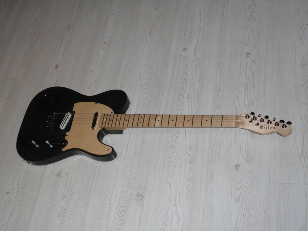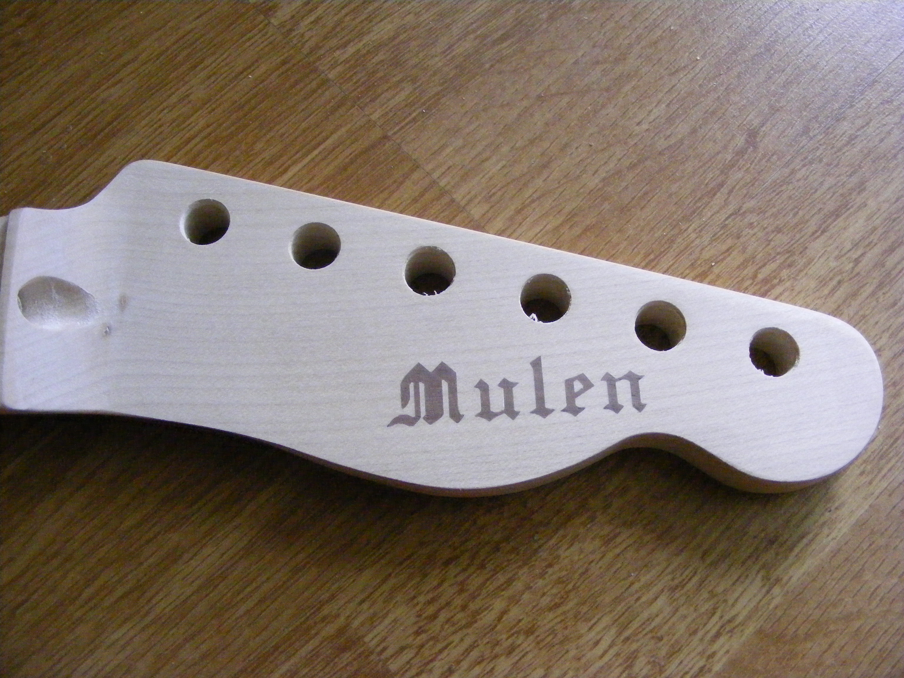 Tak som sa trochu pohral s napisom na krku... je to orech vkladaný do javoru ... frezovane všetko 0.5mm frezkou a vkladané pinzetou... velice opatrne som daval dole tie pismenka z obojstrannej pásky :D