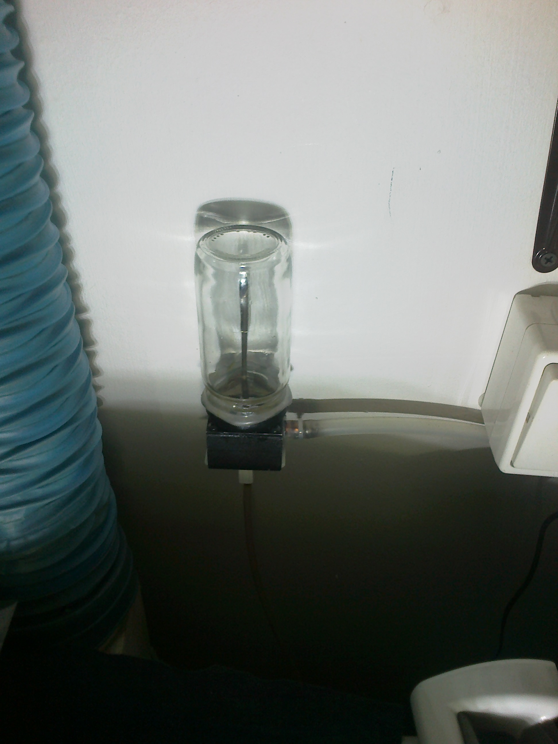 Já mám tu kostku s flašou od feferonek, ze strany přivádím vzduch z pivní flaše a zezhora (tou trubičkou (snad je ta tom vidět) ho odebírám spodem).