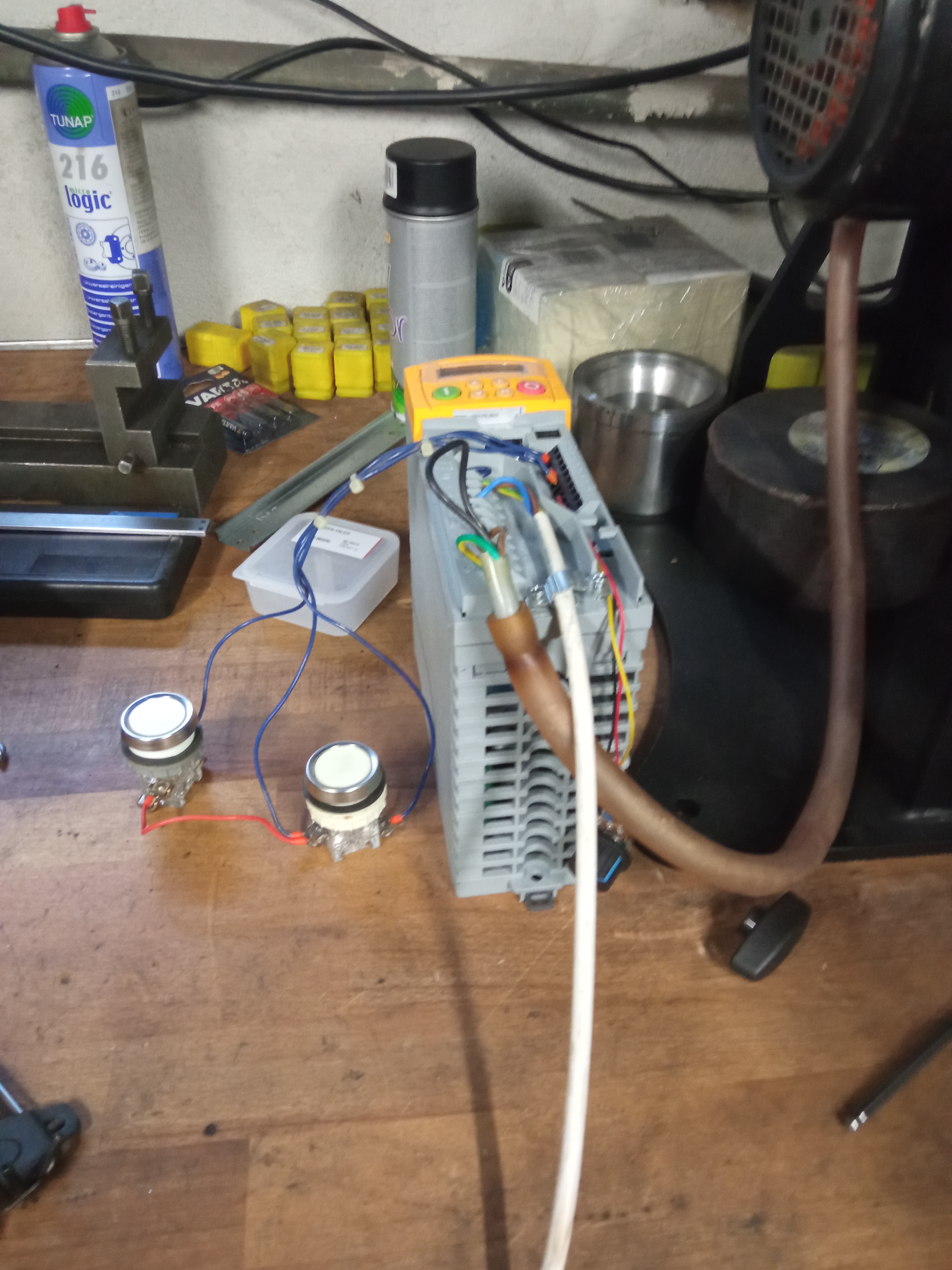 Ještě musím přidělat frekvenčák, zakrytovat ho a udělat ovládací panel na tlačítka a poťák, ale už teď jsem nad míru spokojený a bude to pro mne užitečný pomocník v dílně.