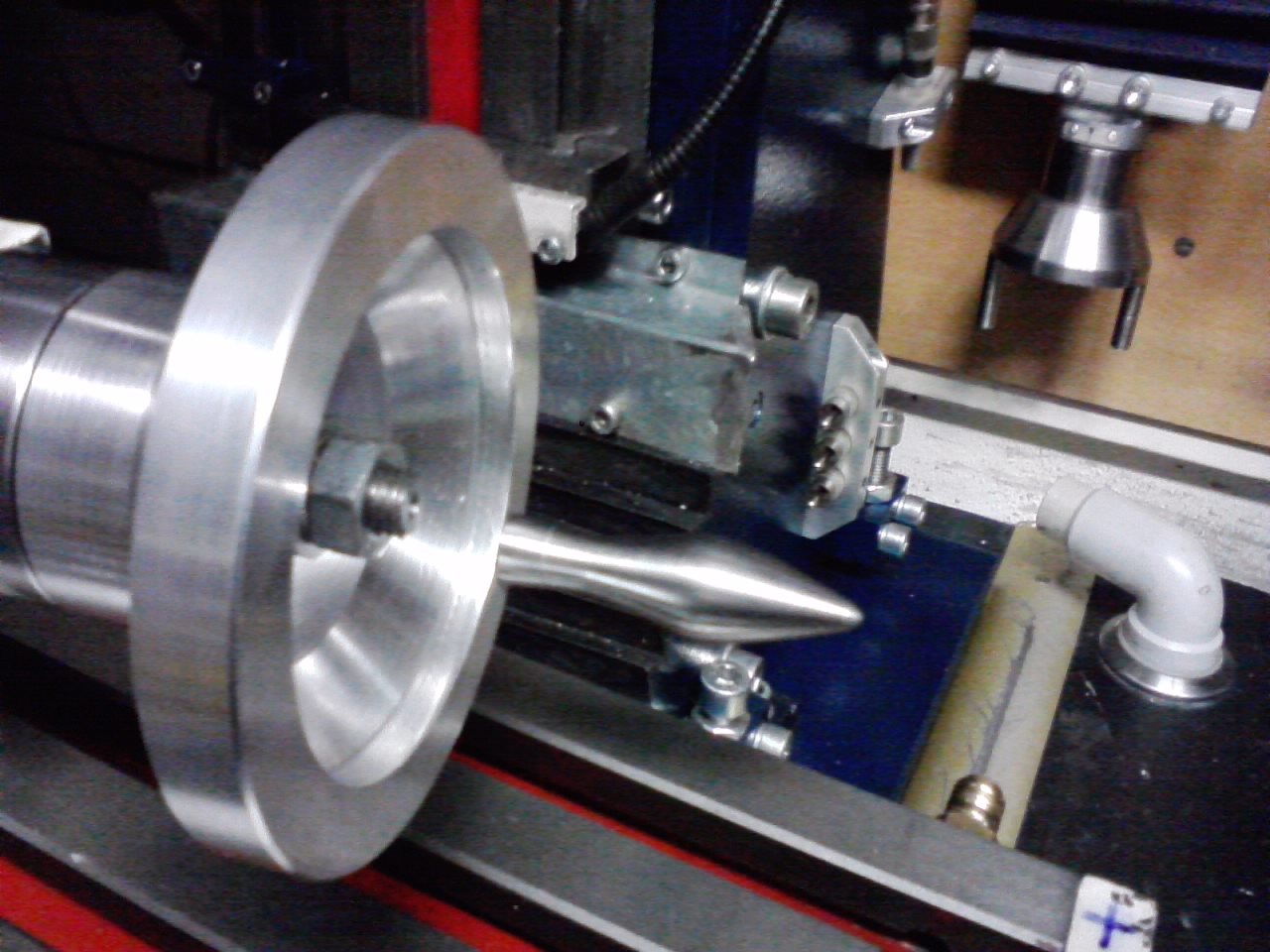 já takhle kdysi obráběl takový kuželíky průměru asi 50 s rovným čelem a byl obrovskej problém s výkonem vřetene, měl jsem tam 1kW a bída.. druhej problém byl s otáčkama chce to zvyšovat otáčky se zmenšujícím se průměrem to je pak uplně o něčem jiném.. samozřejmě můžeš namítnout že i normální soustruh má jedny otáčky, ale pokud budeš dodržovat řeznou rychlost je to o poznání lepší.. nicméně nakonec jsem to měl vychytaný, chce si to hrát..