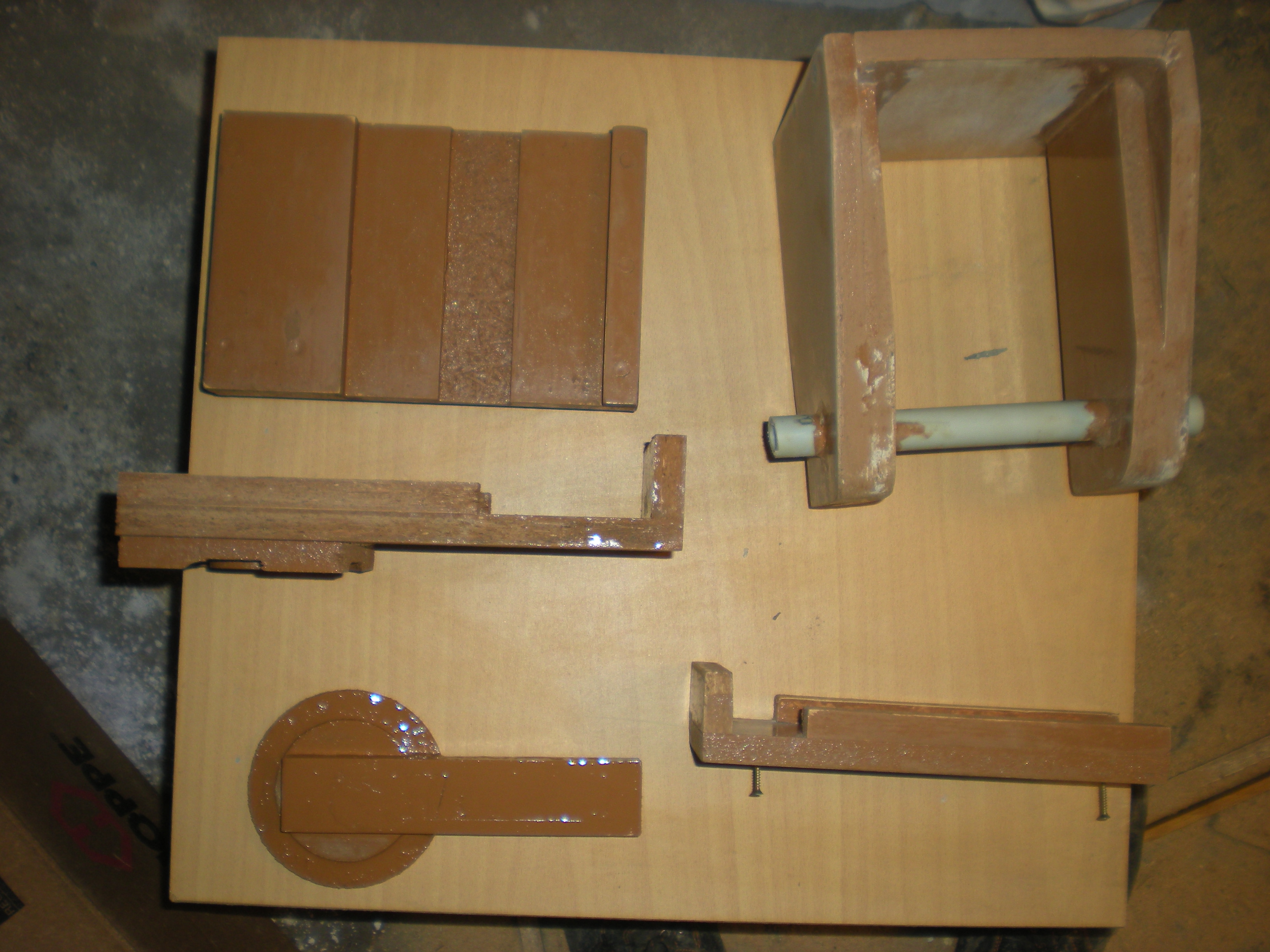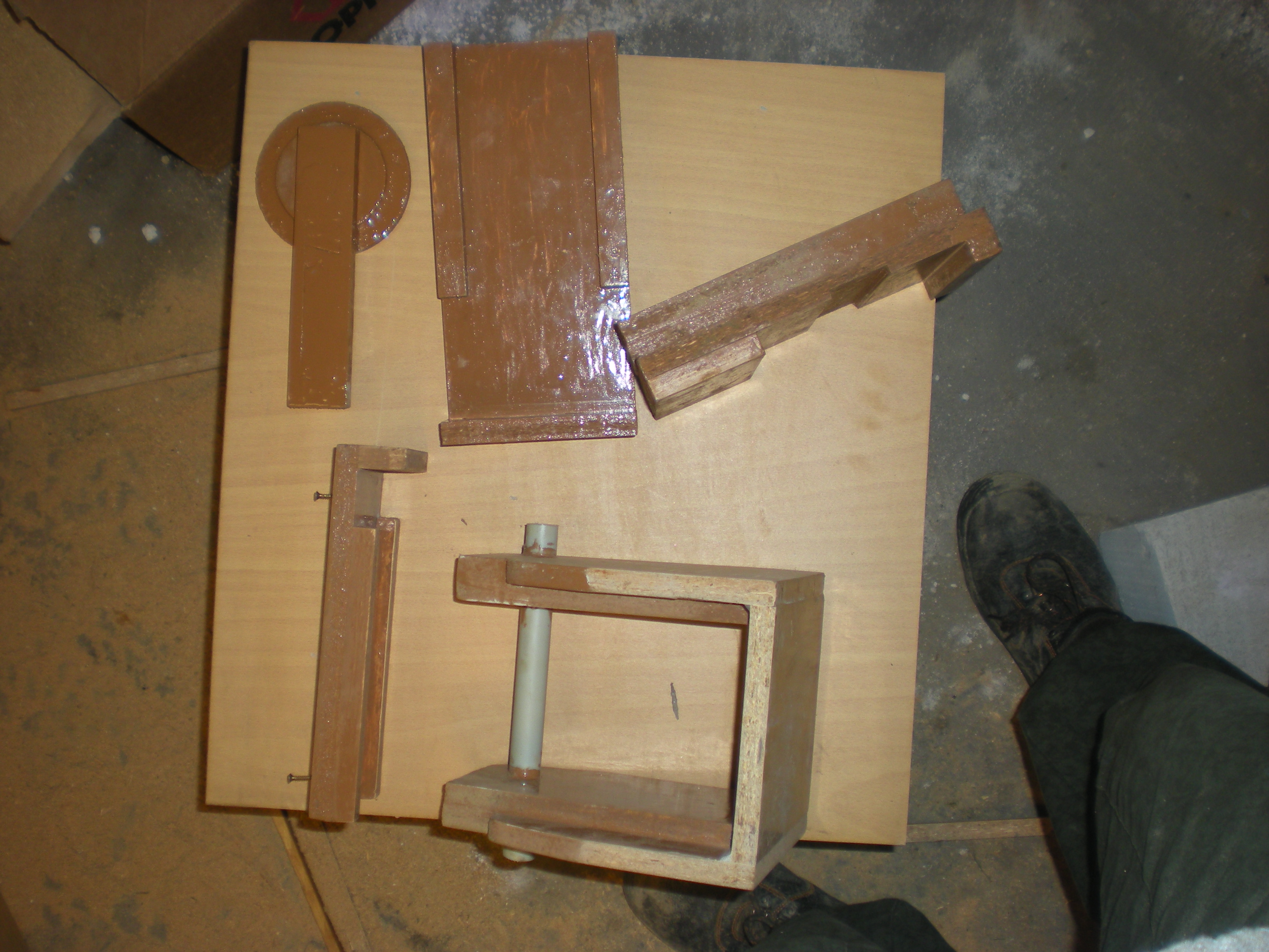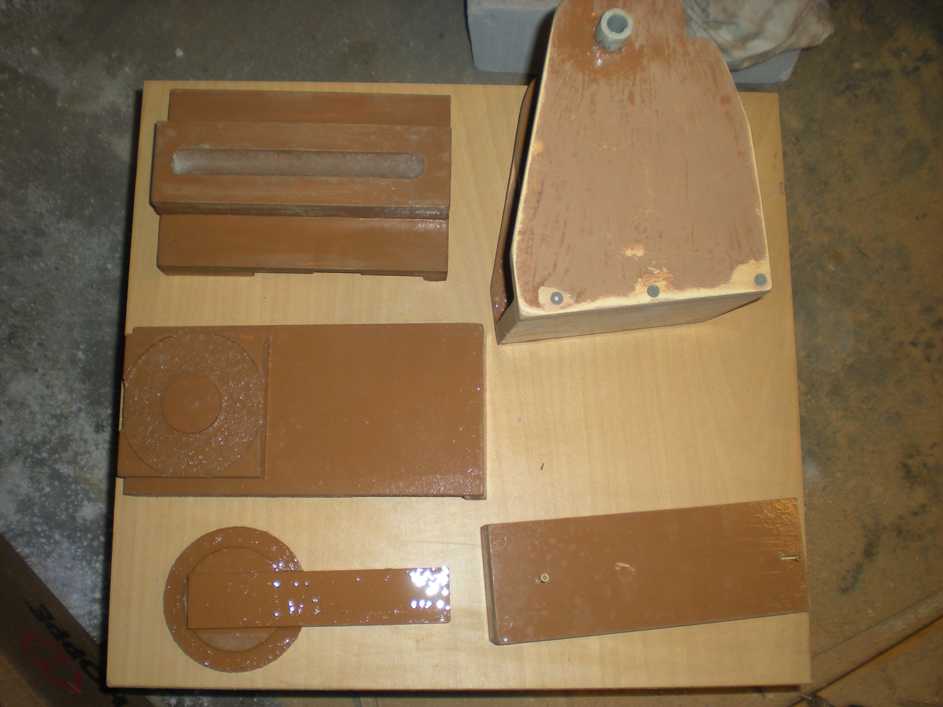 Modely jsou vyrobeny z mdf síla stěny 1,6mm. jádro vřeteníku je z plastové trubky 20mm střed 160mm od pomyslné základny.Celé natřeno syntetickou barvou co dílna dala.a to kvůli nasákavosti mdf a taky pro hladký povrch při formování