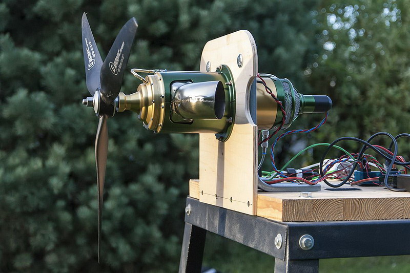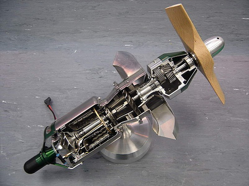 Původně jsem tady s tím nechtěl obtěžovat (vzhledem k tomu, že to není můj výrobek) ALE znáte to - člověk se rád pochlubí a přeci jen je to krásná strojařina. Jako dlouholetý stavitel a provozovatel model.turbín jsem si splnil sen a zakoupil turboprop anglické firmy WREN. Vždy mě odrazovala cena - která je závratná až astronomická, ale bylo to s véélikou slevou - no nekupte to. Vrtule není natvrdo spojena s turbínou, ale jedná se o tzv. volnou turbínu. Základem je klasická malá modelářská turbína, která volně (myšleno výfuk.plyny) pohání další turbínové kolo. A to přes převodovku pohání vrtuli. Konkrétně u tohoto modelu se jedná o planetovou převodovku. Na jednom z obrázků je vidět řez o něco většího bratříčka, který má převodovku klasickou. Celková hmotnost motoru je cca 1600g max. otáčky na turbíně 195 000 volnoběh 55 000 akcelerace 2s. Jen decelerace je okolo 8s - důvod je ten, aby vrtule setrvačností nepřetáčela převodovku. Na výstupu může být díky volné turbíně vrtule 18-24 palců. Oproti běžným turbínám to má hodně malou spotřebu. Na plný výkon cca 160ml/min. S optimální vrtulí (myšleno co největší) dosahuje tahu až 16kg. S koupí jsem dlouho otálel - přeci jen šlo o dost velký obnos. Nakonec na to padly všechny našudlené peníze, které jsem měl na stavbu svého dalšího CNC (výhradně na dural v masivním provedení) - teď to bude muset počkat - teď už se na tenhle skvost staví EMB-312 Tucano 1/5 . Všichni mi říkají, co se stane až ti to spadne - já řikám nic, protože se naučím padat pozadu