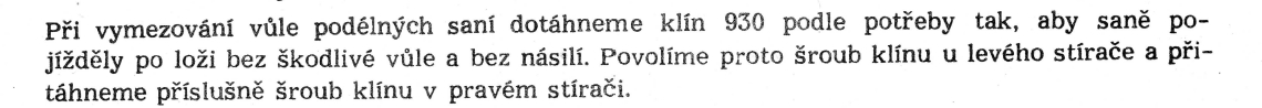 Nevím o jakých šroubech zespoda pod skříní mluvíš, nemůžu se teď fyzicky na mašinu podívat, ale v origo návodu, který mám k dispozici se píše, o šroubech u levého a pravého stěrače (viz obr.) Určitě se vůle na saních suportu neseřizuje po nějaké demontáži suportové skříně. Protože jsem ještě seřízení vůle na saních nepotřeboval dělat, tak to z hlavy nevím. Po neděli se kouknu jak to má S-28 s tím seřizováním a dám vědět.