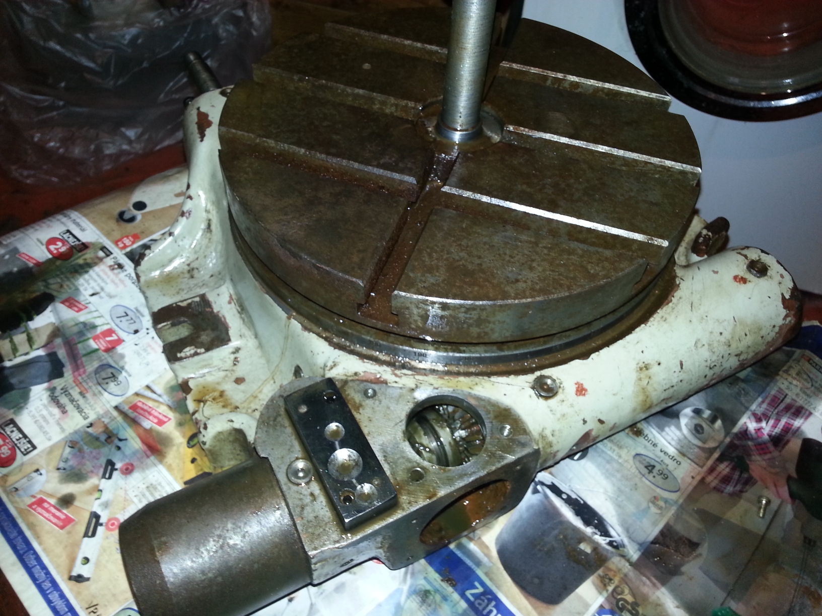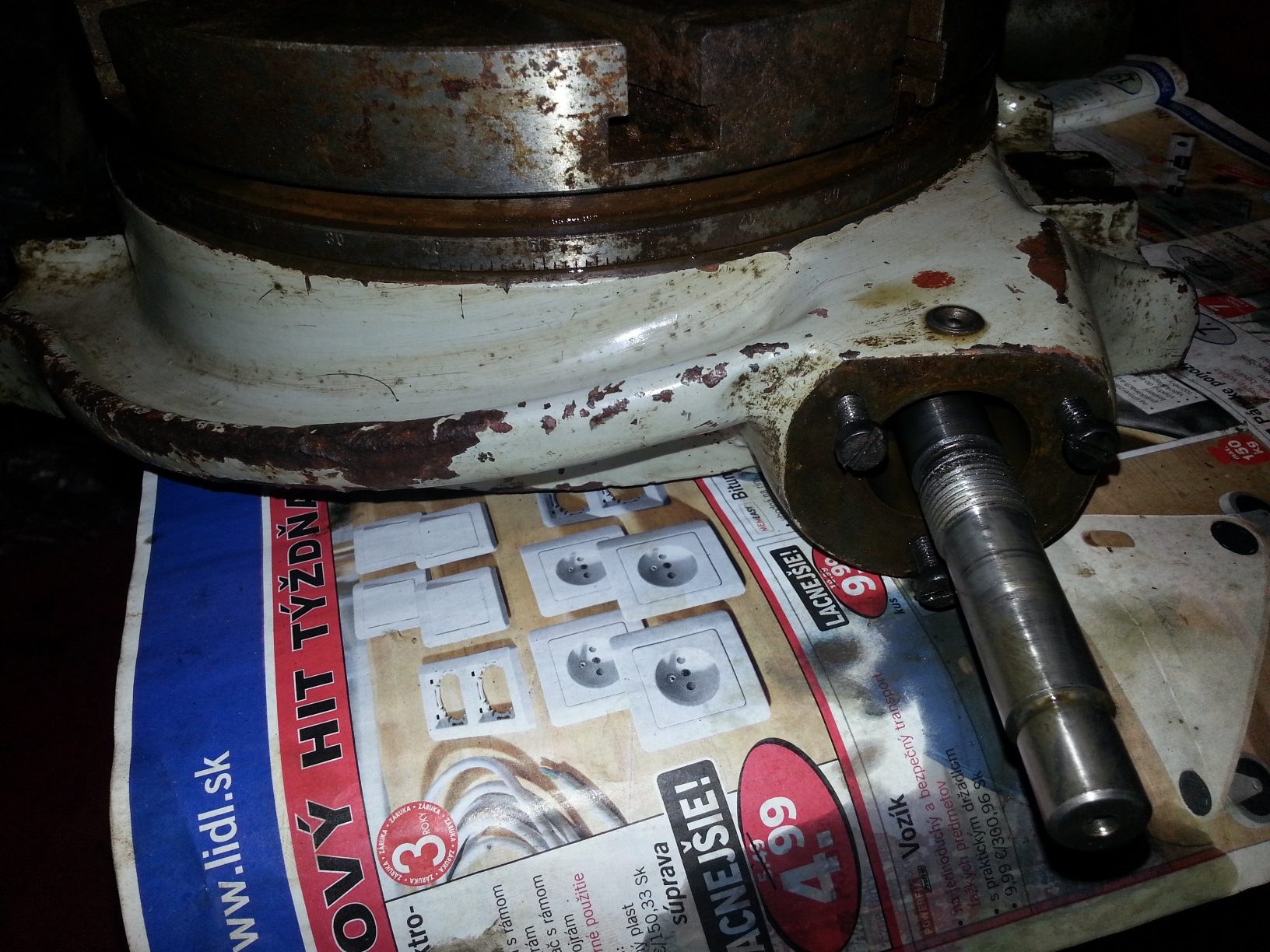 Včera som získal starší otočný stôl (pozri obrázok 1). V jeho strede bol nejaký trn. Pokúsil som sa ho odstrániť, no mám s tým pomerne značný problém... Keďže to je "mierne" hrdzavé tak nebolo zrejmé, ako je to vlastne konštruované. Skončil som na tom, že teraz mi tam trčí nejaká tyčka so závitom na konci. Od spodu je taký krúžok s dražkami (obr 3 a 4), ktorý ale nejde povoliť (ťukám na to kladivkom cez skrutkovač). Pri mojich pokusoch o rozbor sa to celé "seklo", takže sa to už ani netočí,... :-( V takomto štádiu som sa rozhodol, že to teda celé rozoberiem, vyčistím a namažem (tá vazelína, čo je v tom je už tuhá)) Chcem sa ešte opýtať:"Rozoberal to už niekto? Aký je postup? Čo najskôr"pôjde von"? Samotná rotačná časť stola (s drážkami), či najskôr povyťahovať tie hriadeľky, ktoré zabezepčujú točenie stola ?" Ak by náhodou niekto mal skúsenosť a bol by ochotný sa s ňou podeliť, budem veľmi povďačný. Ďakujem.