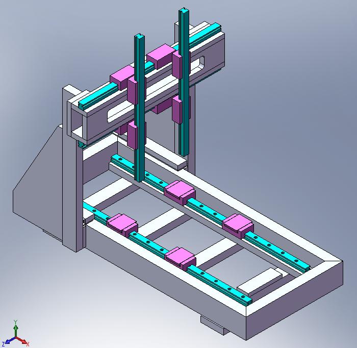 Takhle?Bude to lepší?Osa Z se posunula o cca 60mm blíž k těm bočnicím.Ty sloupky plánuju z plocháče 60x30 plnýho a ty boky z cca 10mm plechu podle toho co bude k mání.Je to dělaný narychlo neni mi moc jasný jak tam teď dam matku ale to už si pak domaluju :)