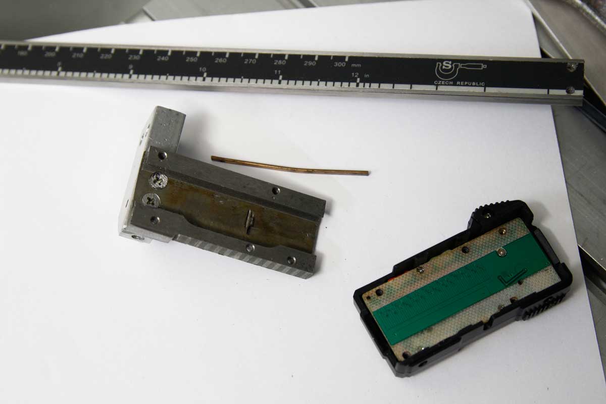 Komplikace je že ta nosná lišta je kalená a tudíž vrtání otvorů není moc reálné. Řezal jsem ji flexou a na uchycení ponechal ty pidi šroubky na konci - M1,5.