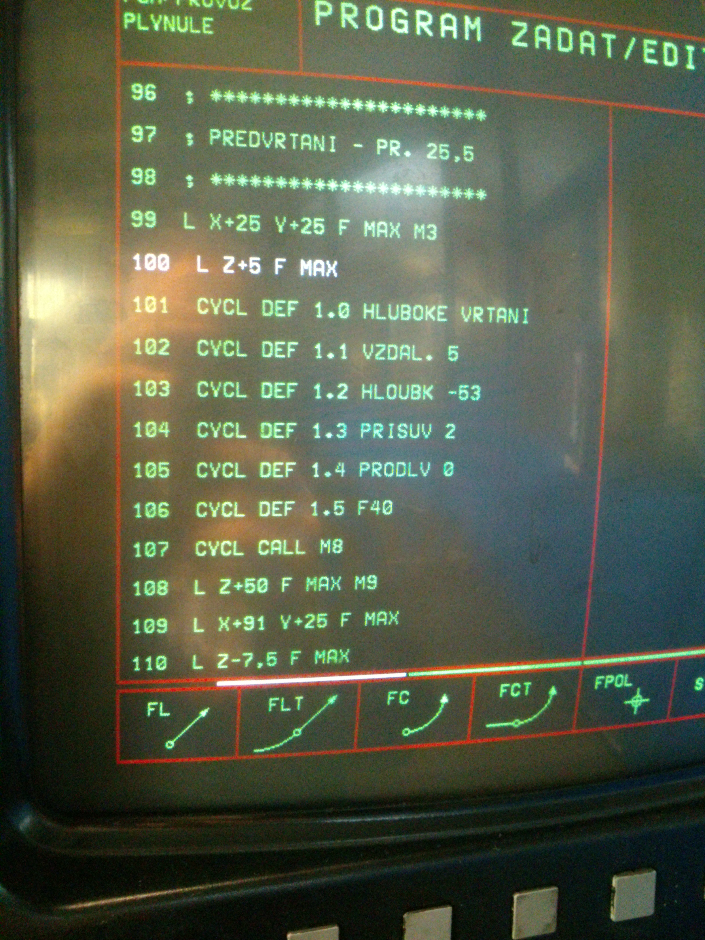 tak přesně toto, ale na chlup, se stalo i mě zhruba před 14ti dny. Jezdím teď na vedlejšák do firmy, kde mám k dispozici stroj s TNC 426 (konkrétně MAS MCV1000, celkem starší kousek). Udělal jsem si program, kde jsem mimo jiné použil i vrtání, vyvrtávání a kapsování - vše cykly G2xx resp. CYCL DEF 2xx. První den jsem odjel naprosto bez problému dva kusy, po čtyřech dnech (nejezdím tam každý den) ovšem začal stroj stávkovat přesně tímhle způsobem. Nejdřív jen v testu, ale vždy až při druhém zpracování cyklu (první projel). Zkusil jsem teda program spustit naostro, ten bez problémů projel. Další kus už byl ale problém, prostě konec, cyklus nekompletní.